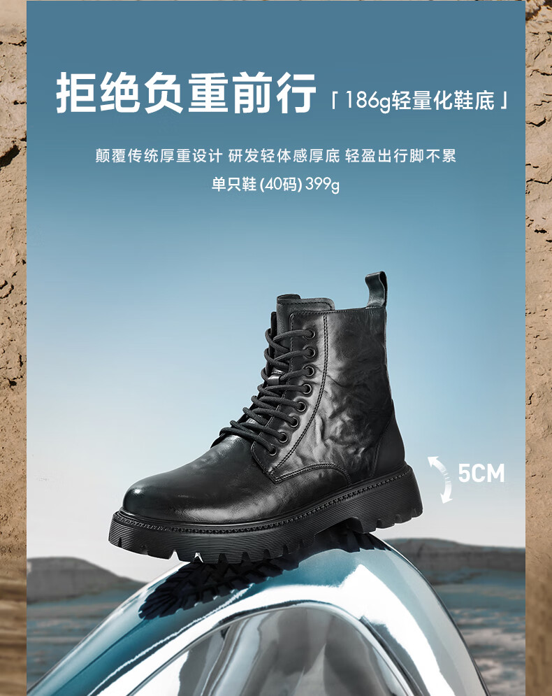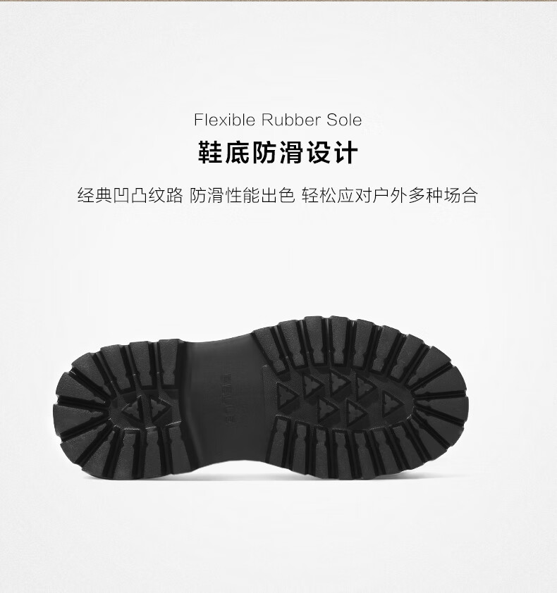 百丽牛皮商务休闲皮鞋男百搭马丁鞋子橡胶底86181CM0 黑 42