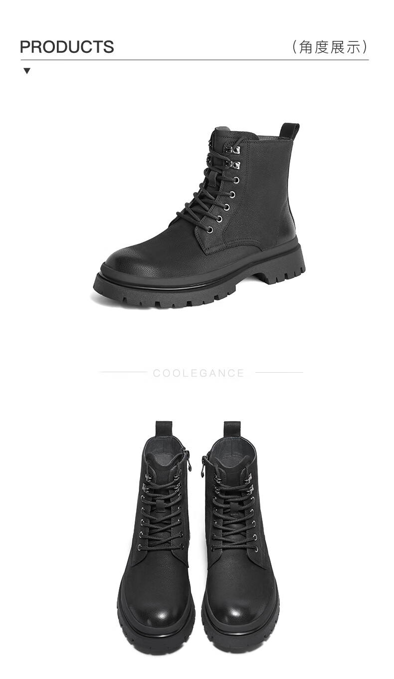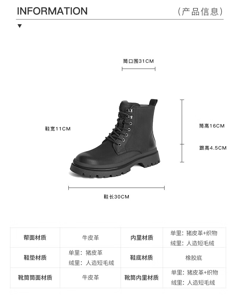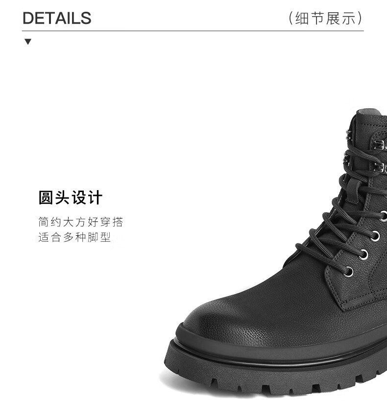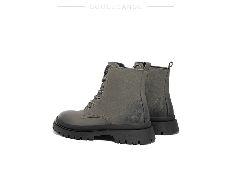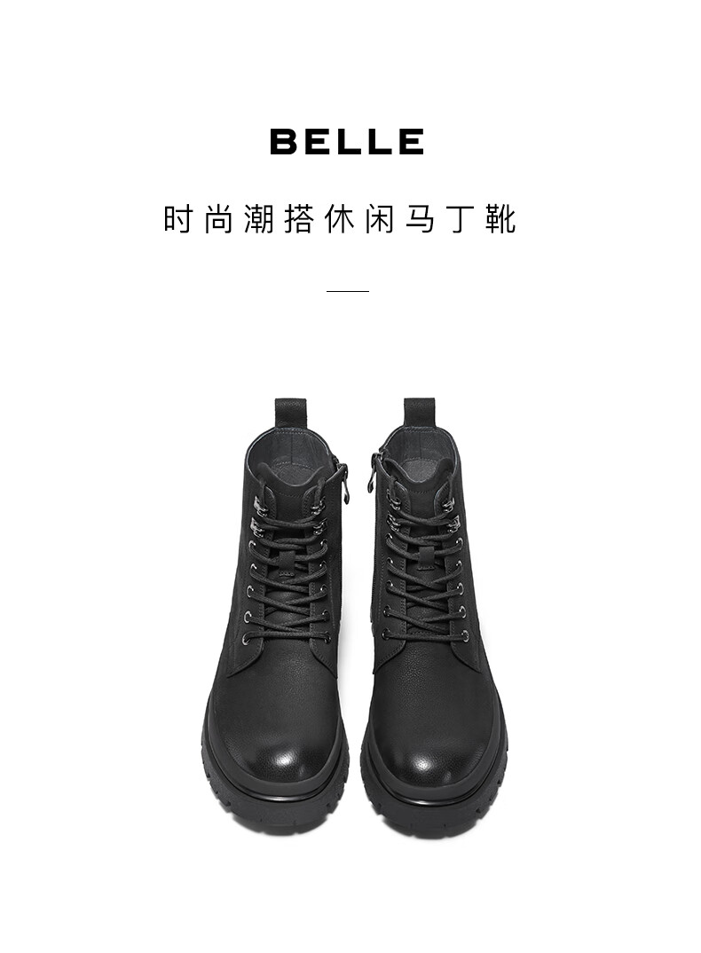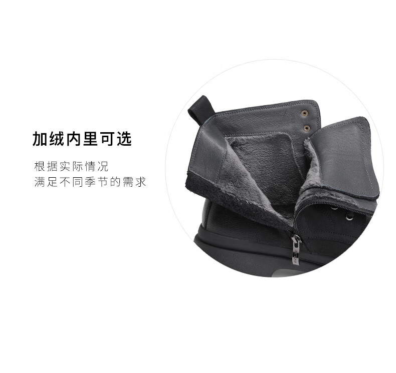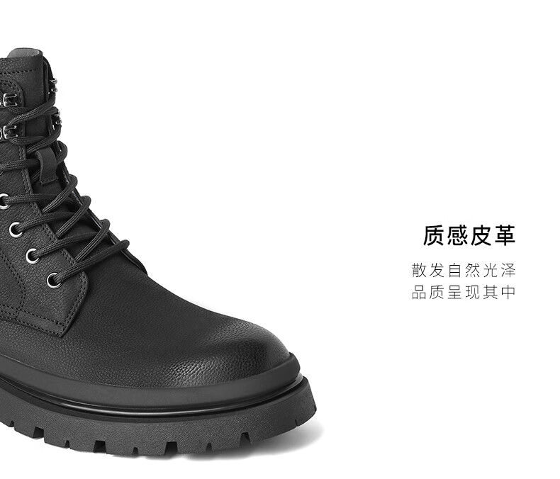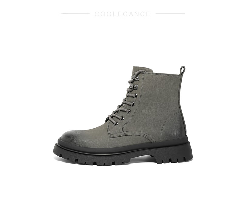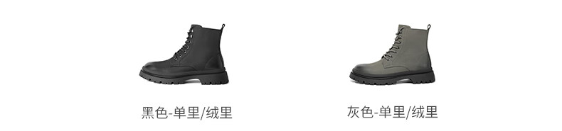 百丽时尚休闲靴男2023冬季新荔纹牛皮户外潮搭马丁靴加绒A1276DZ3预售 灰色单里 38