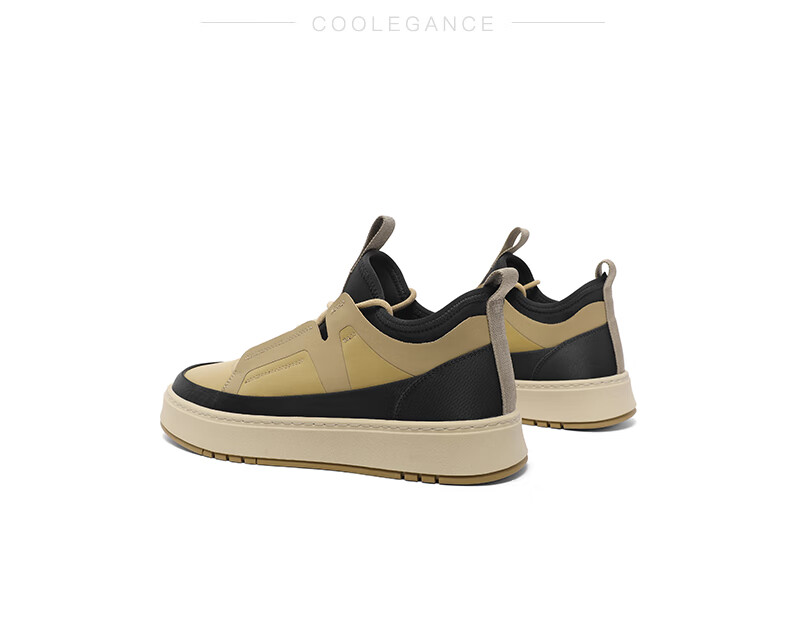 百丽时尚撞色休闲鞋男2023冬季新款厚底舒适高帮板鞋低靴A1259DD3预售 黄色 38