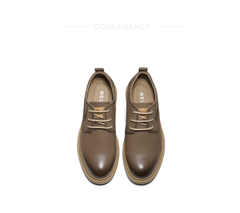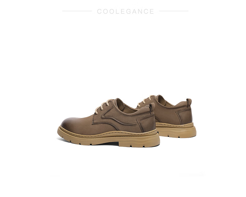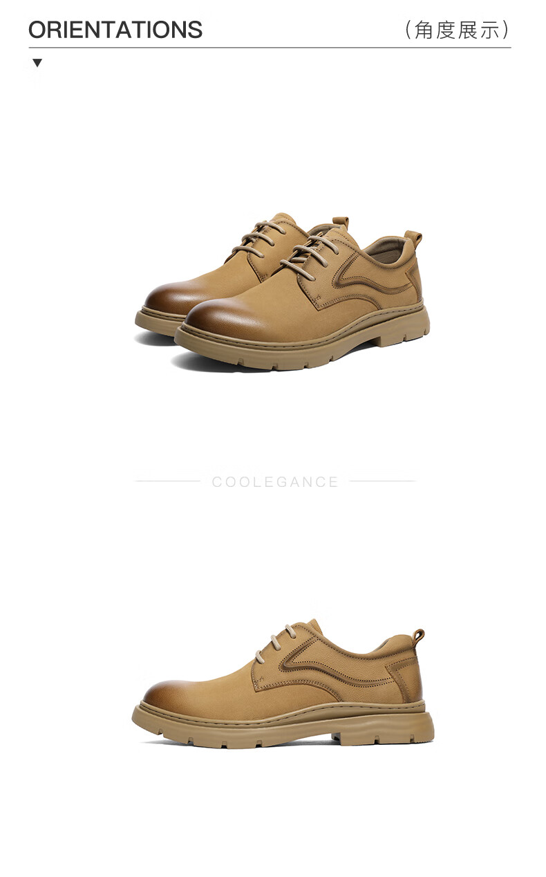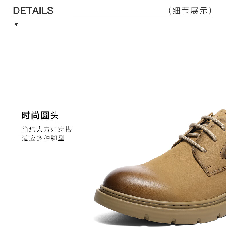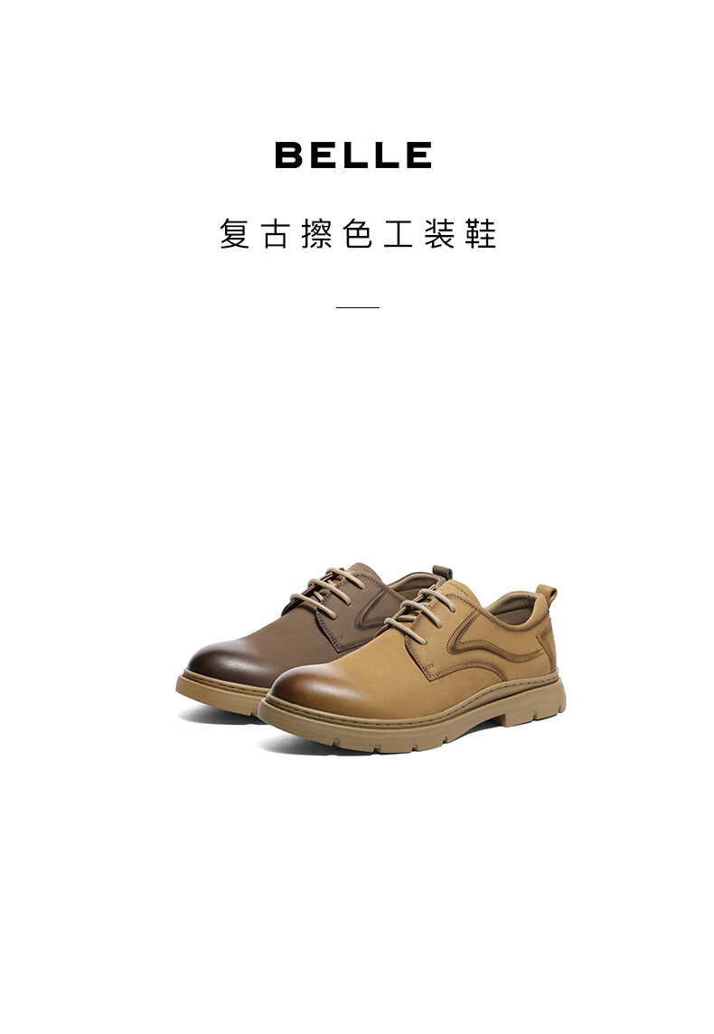 百丽时尚休闲鞋男2023季新牛皮革复古擦色户外潮搭工装鞋A1310CM3预售 黄色 38
