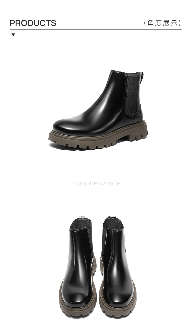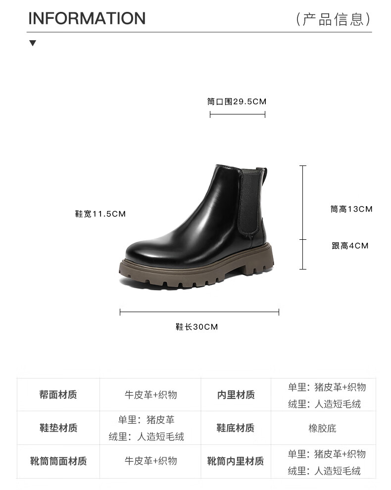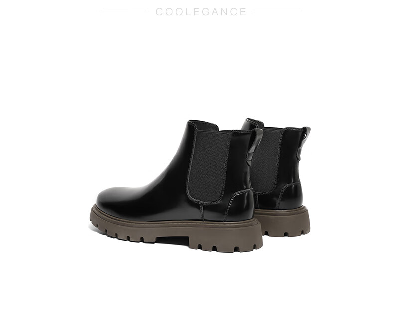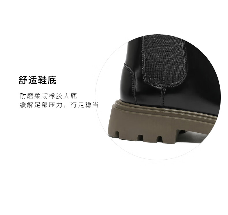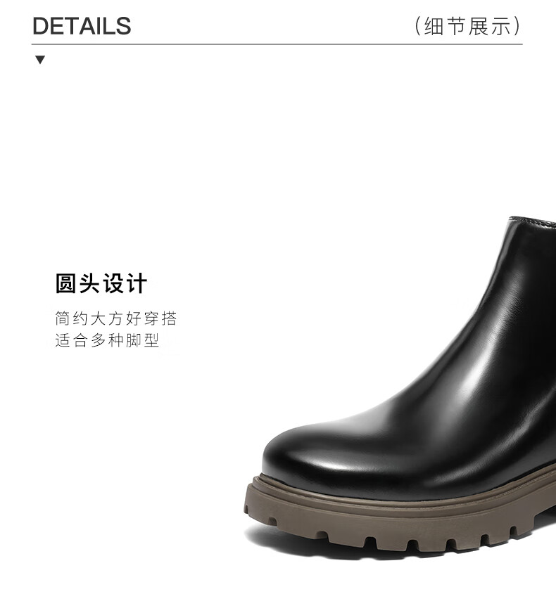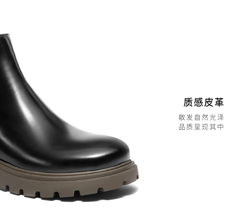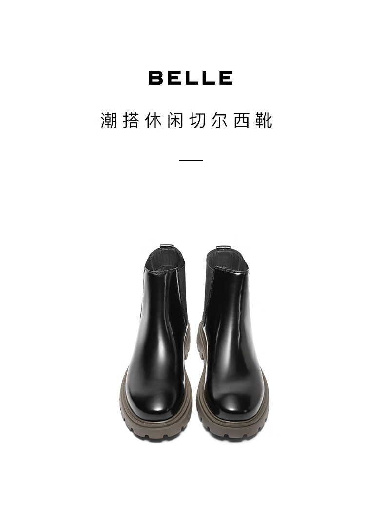 百丽时尚潮搭休闲靴男2023冬季新款厚底切尔西靴短靴加绒A1268DD3预售 黑色-绒里 38