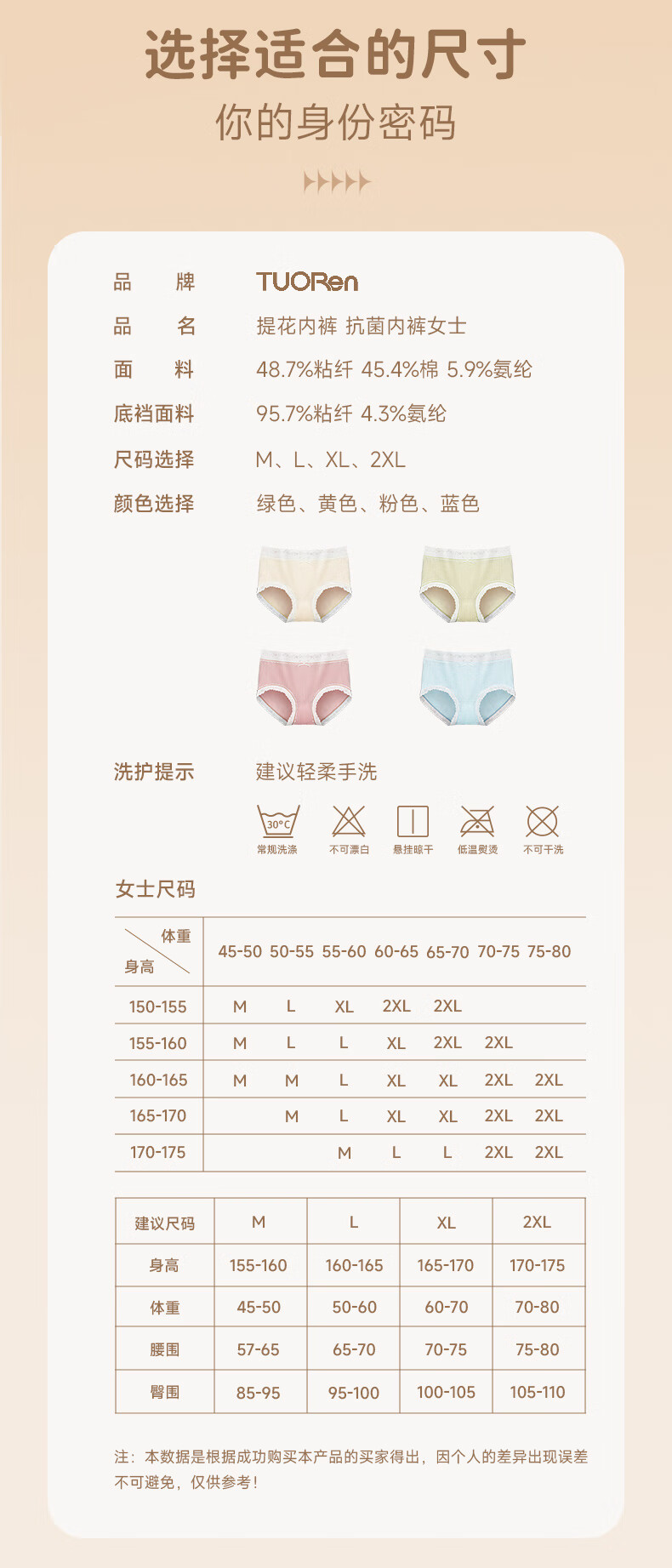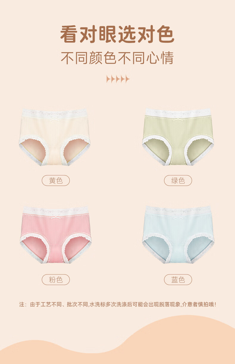 驼人康君内裤女棉抑菌裆提花女士内裤性感蕾丝三角裤4条装七夕礼物 粉+绿+黄+蓝-4条装 M