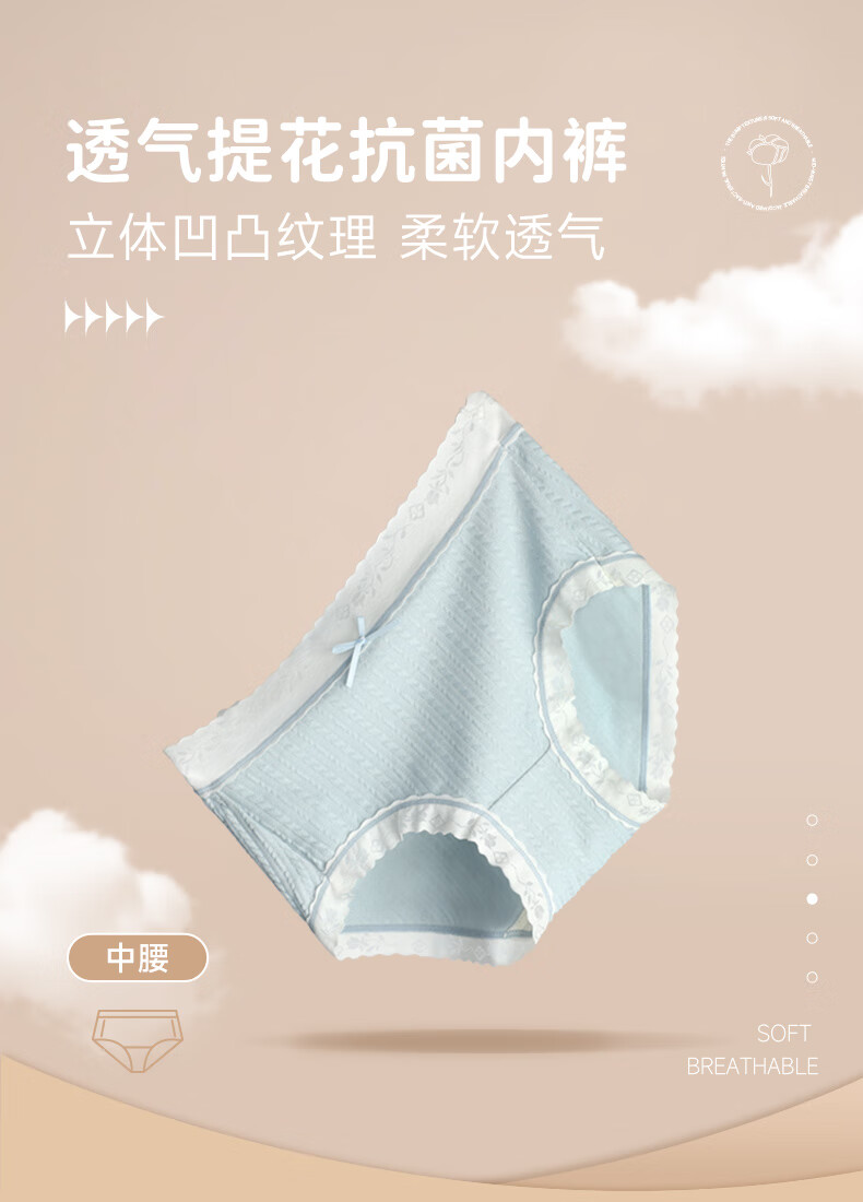 驼人康君内裤女棉抑菌裆提花女士...