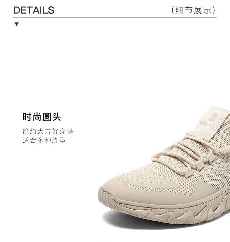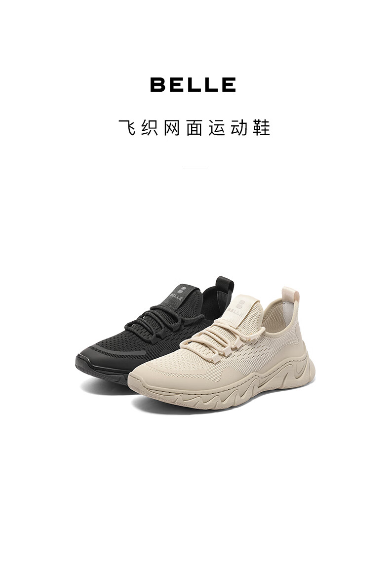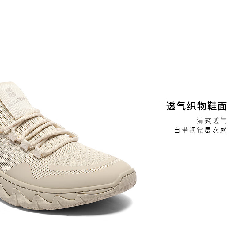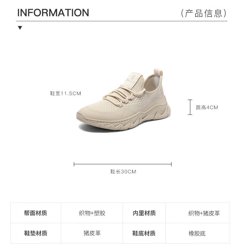 百丽飞织网面运动鞋男2023秋季新款商场同款舒适厚底休闲鞋8AZ01CM3 米色 41
