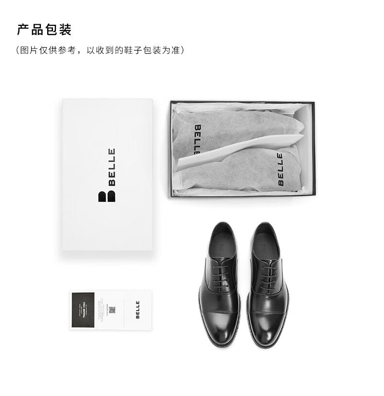 百丽牛皮商务休闲皮鞋男百搭马丁鞋子橡胶底86181CM0 黑 42