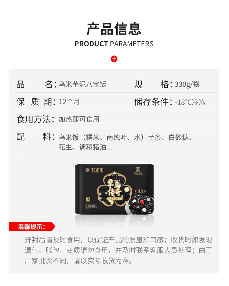 聚春园 官方福州乌米芋泥330...