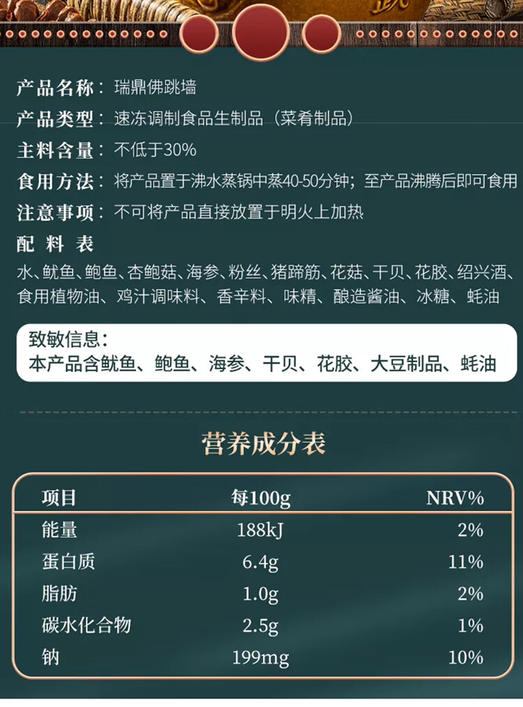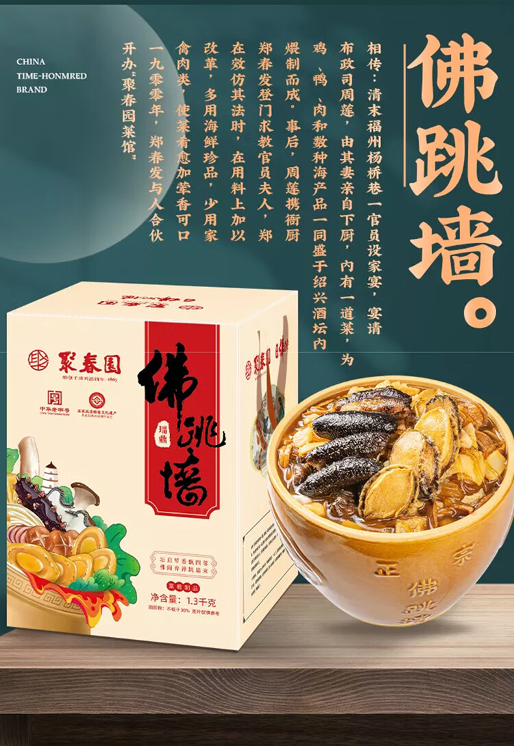 聚春园官方经典传统佛跳墙盒装海参鲍鱼花胶加热即食盆菜正宗佛跳墙礼盒 瑞鼎佛跳墙1.3kg盒装