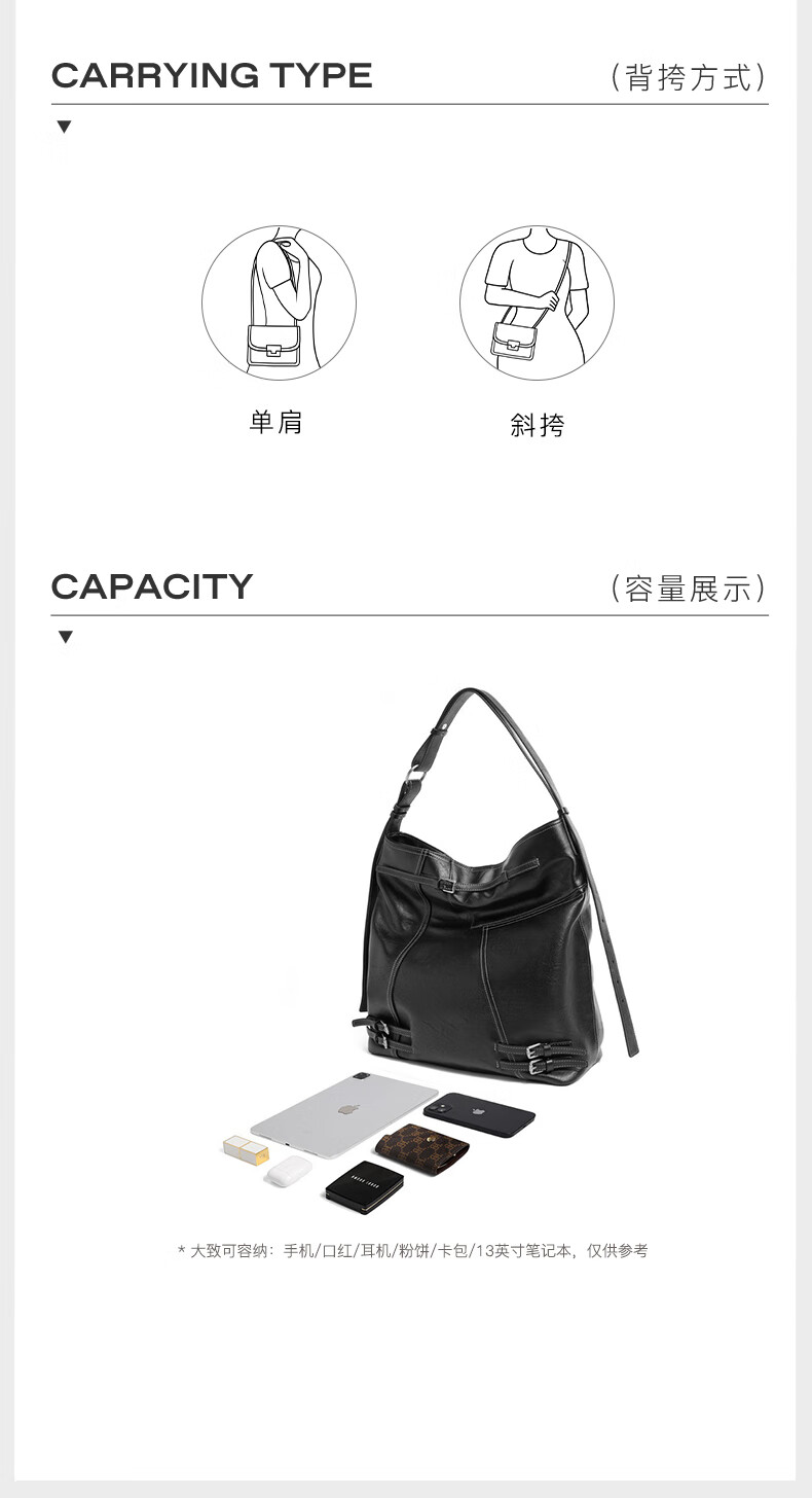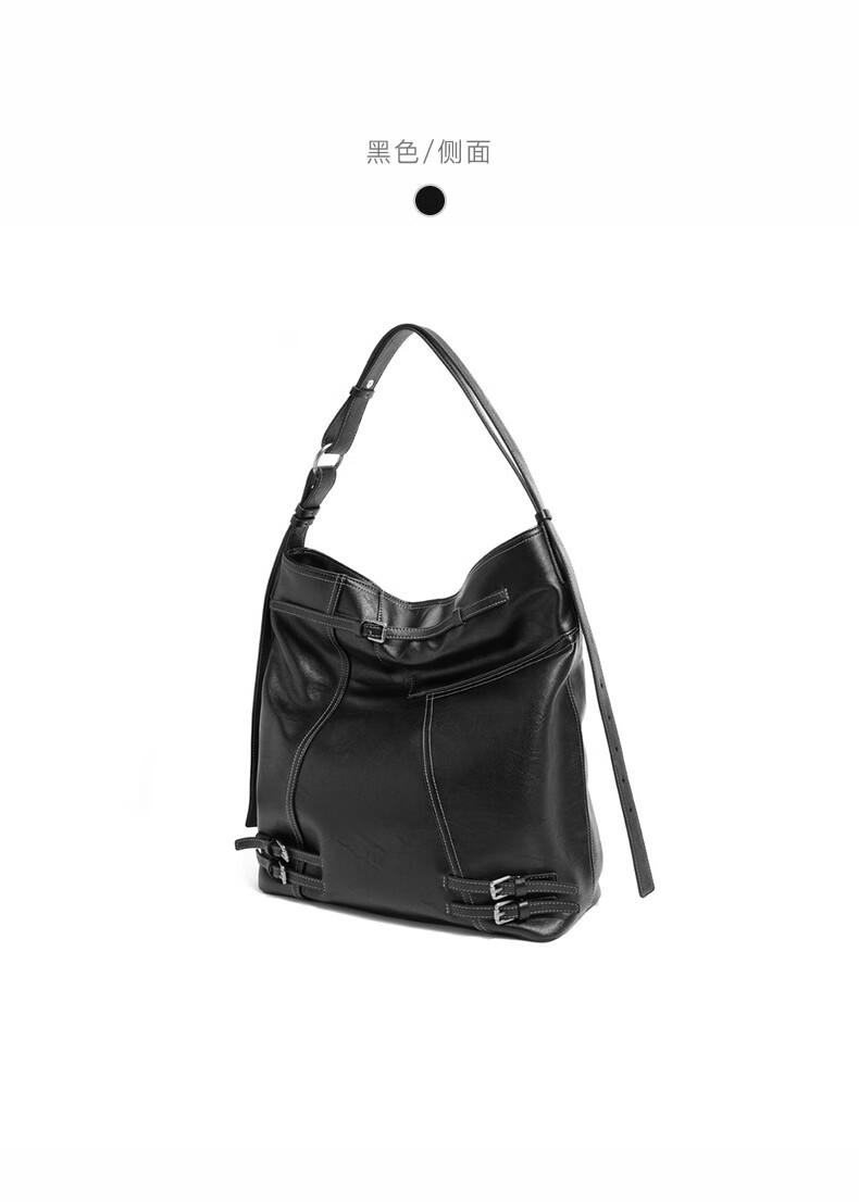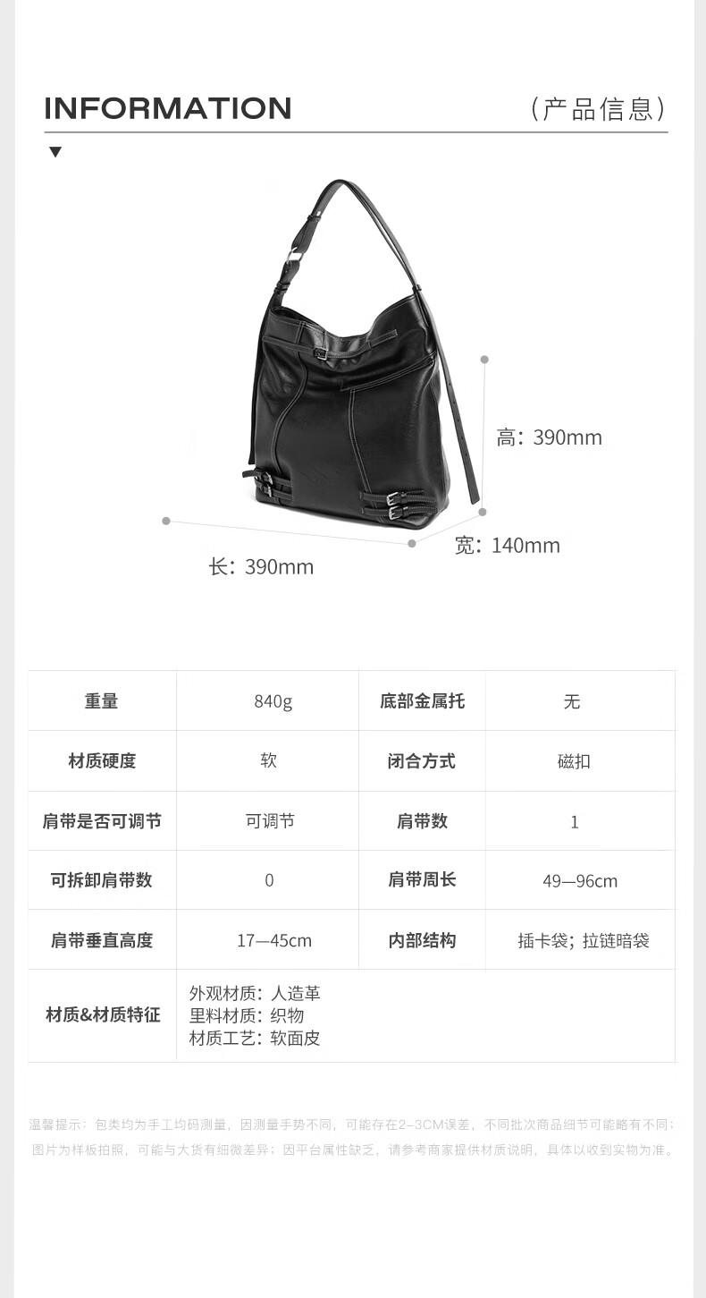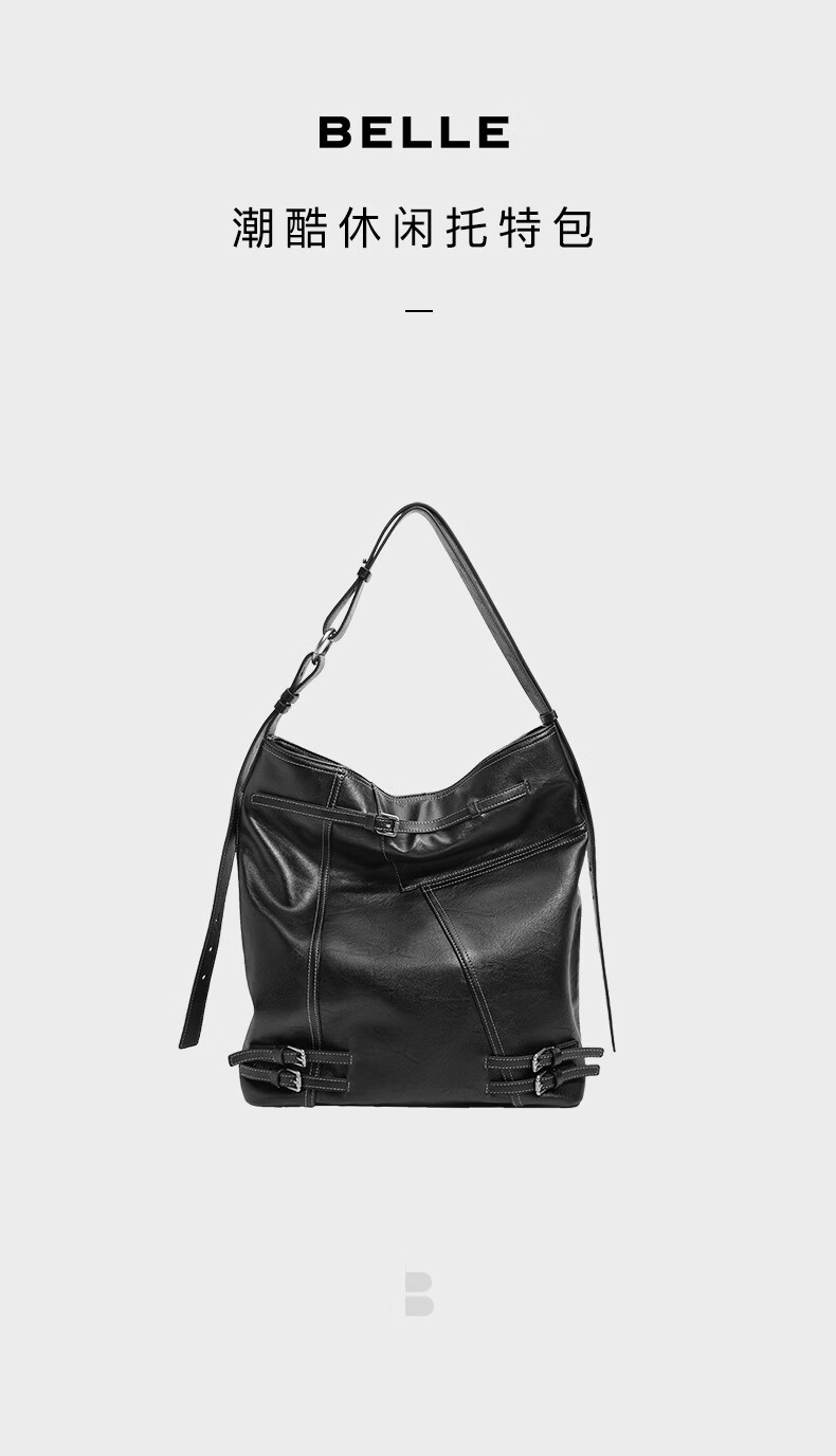 百丽【明星同款】男包2023冬新商场同款潮酷机车包斜挎托特包X9242DX3 黑色 F