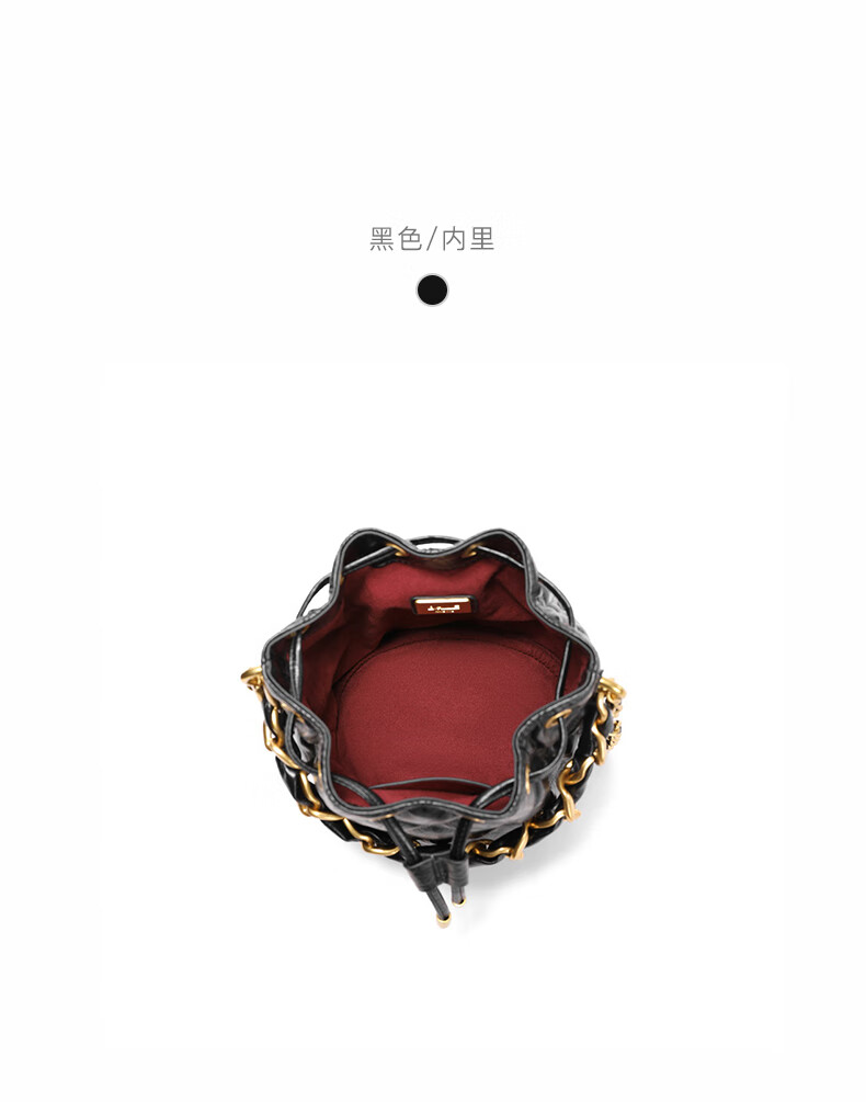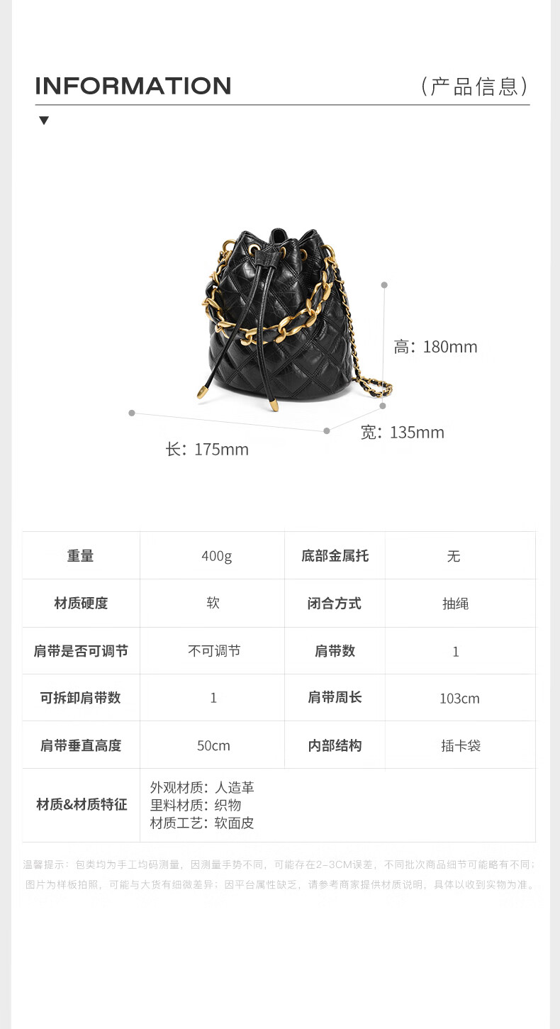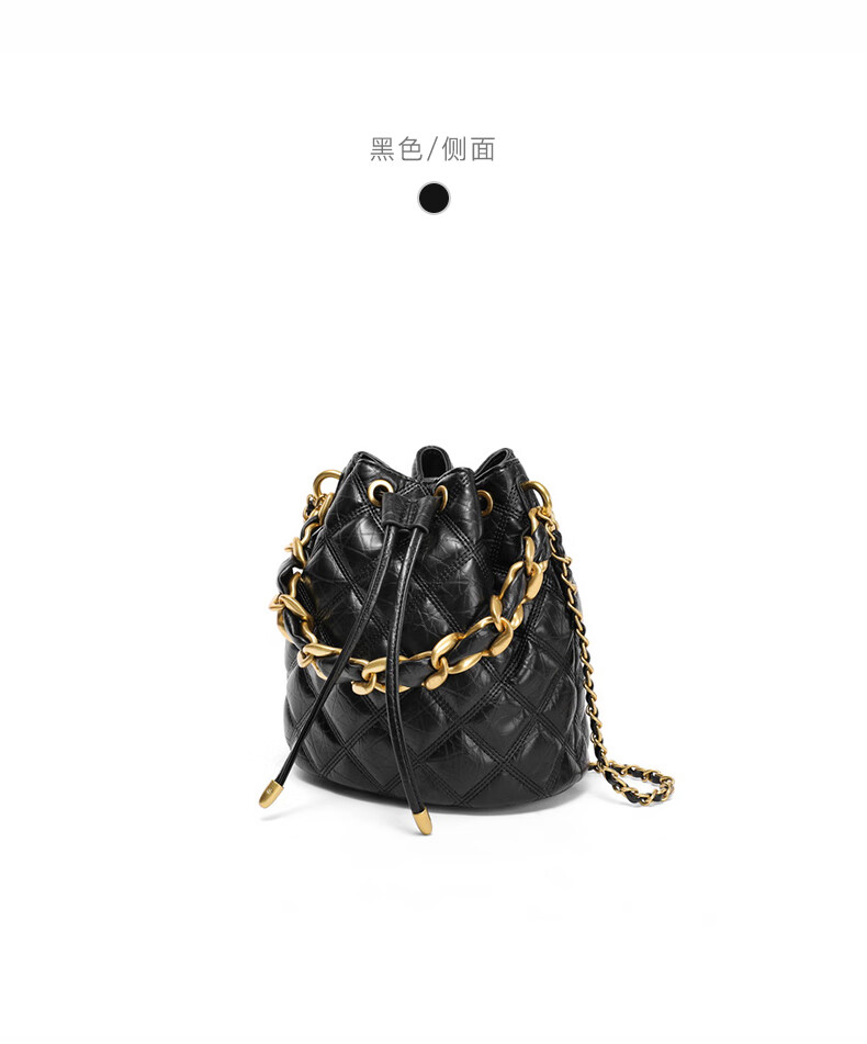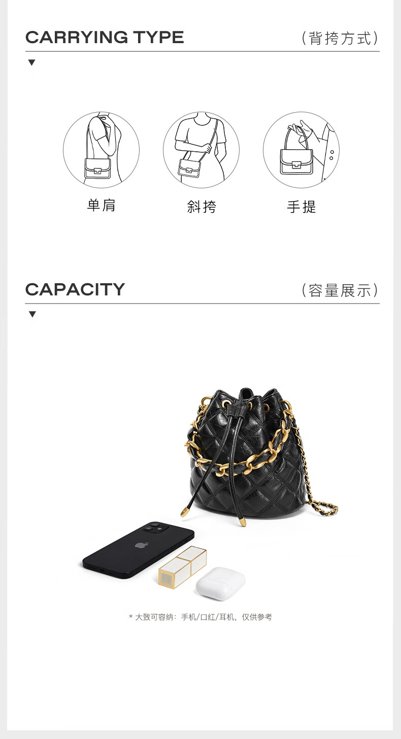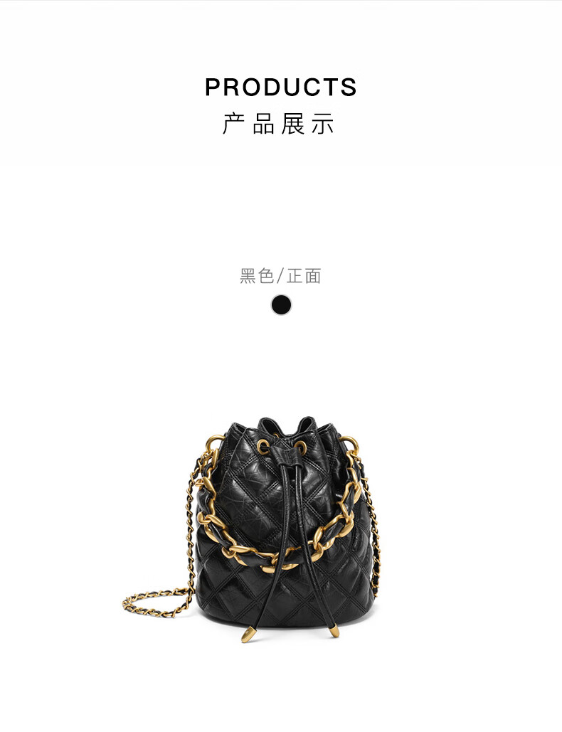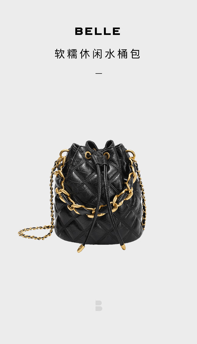 百丽包包2023冬季新款小香风软感休闲单肩斜挎手提水桶包X9217DX3预售 黑色 F