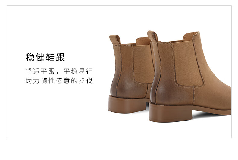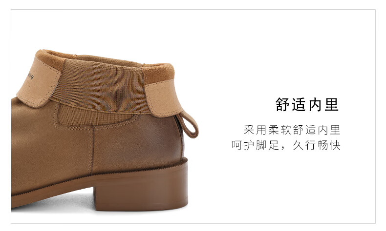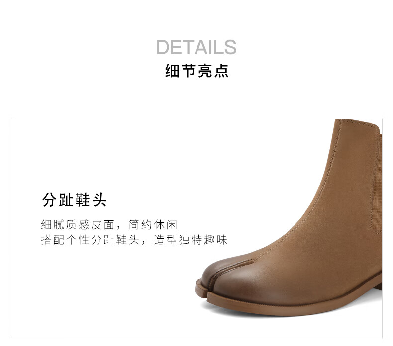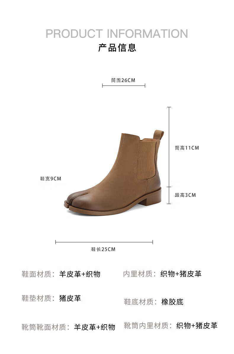 百丽复古切尔西靴女2023冬季新款擦色分趾休闲短靴B1513DD3预售 黑色 34