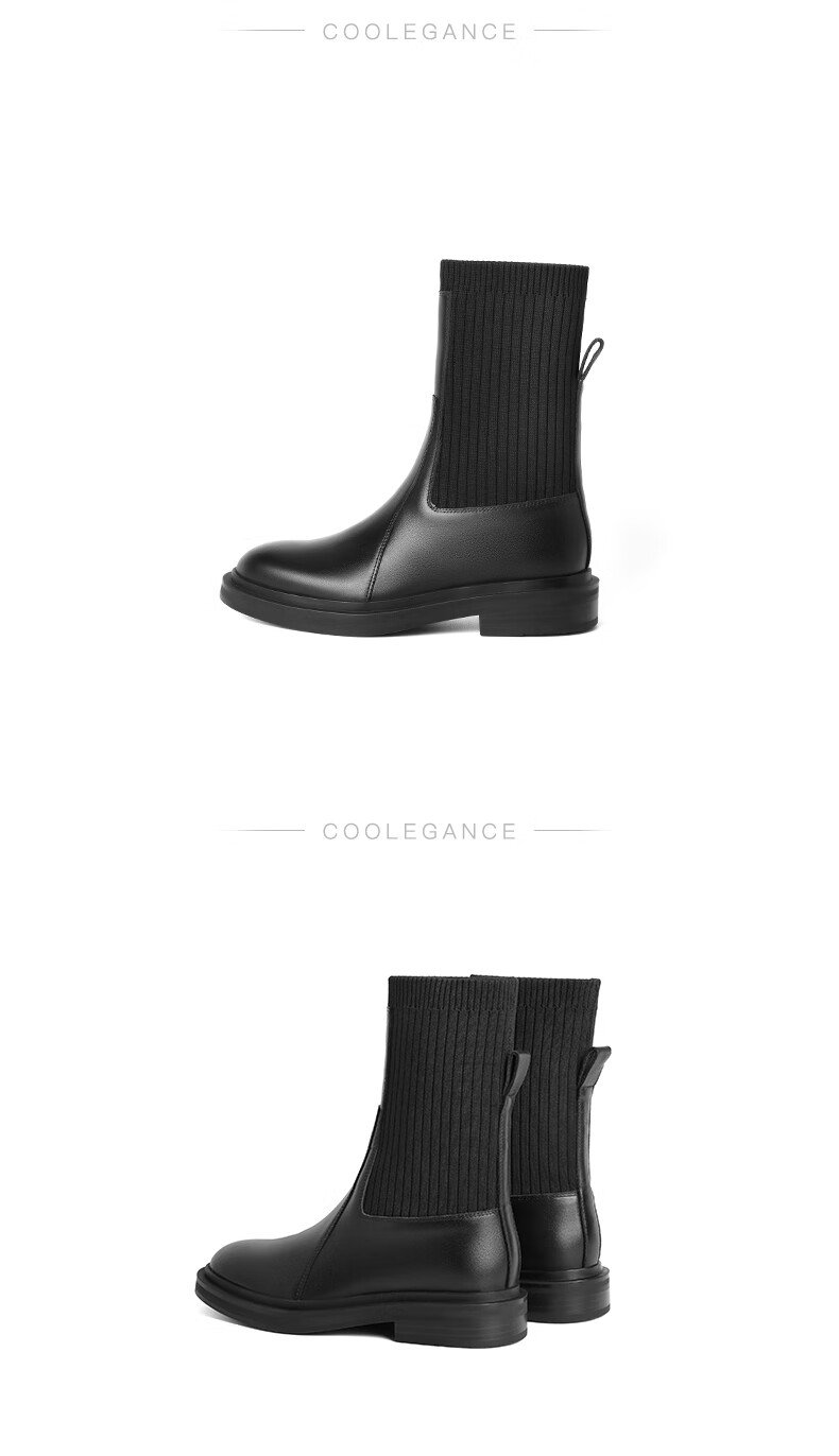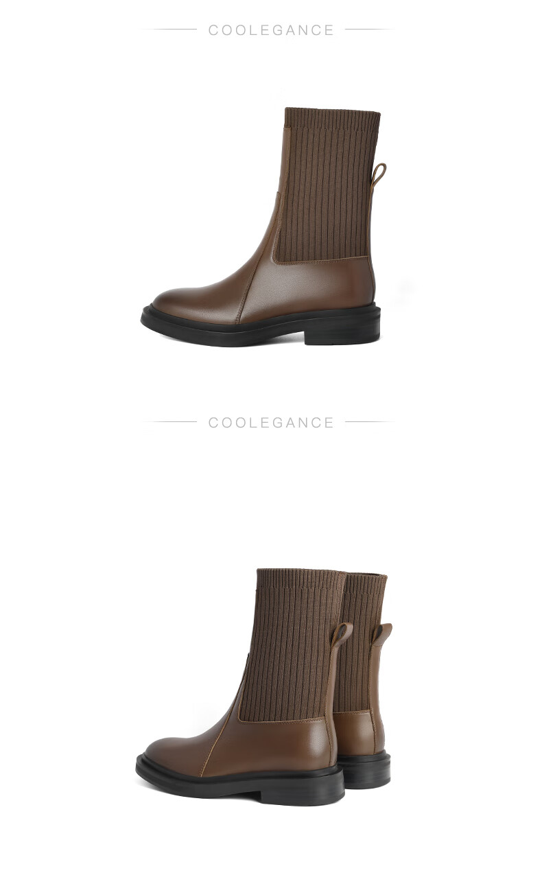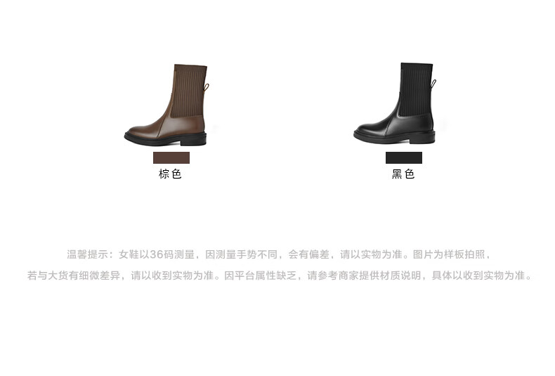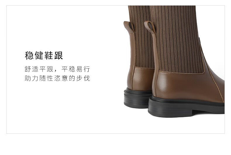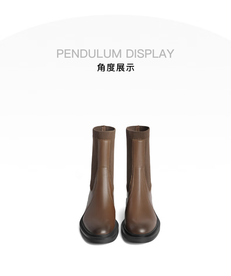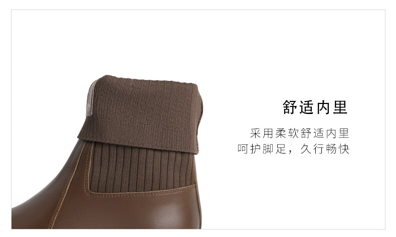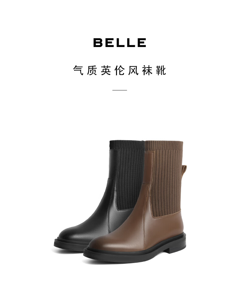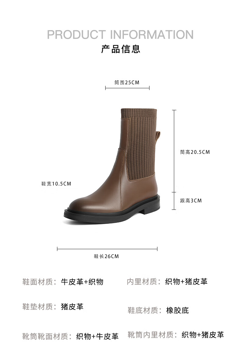 百丽高级简约袜靴女2023冬季新商场同款显瘦短靴A3F1DDZ3预售 棕色 34