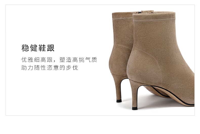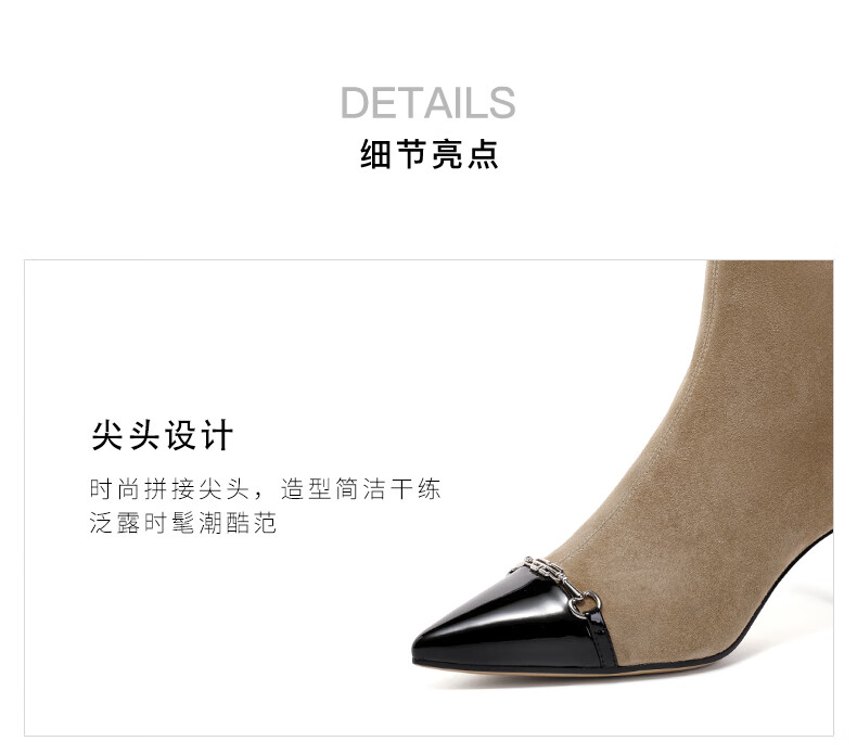 百丽尖头时装靴女2023冬季新...