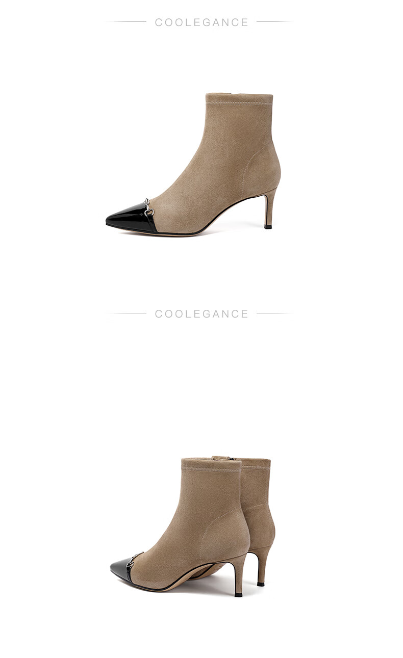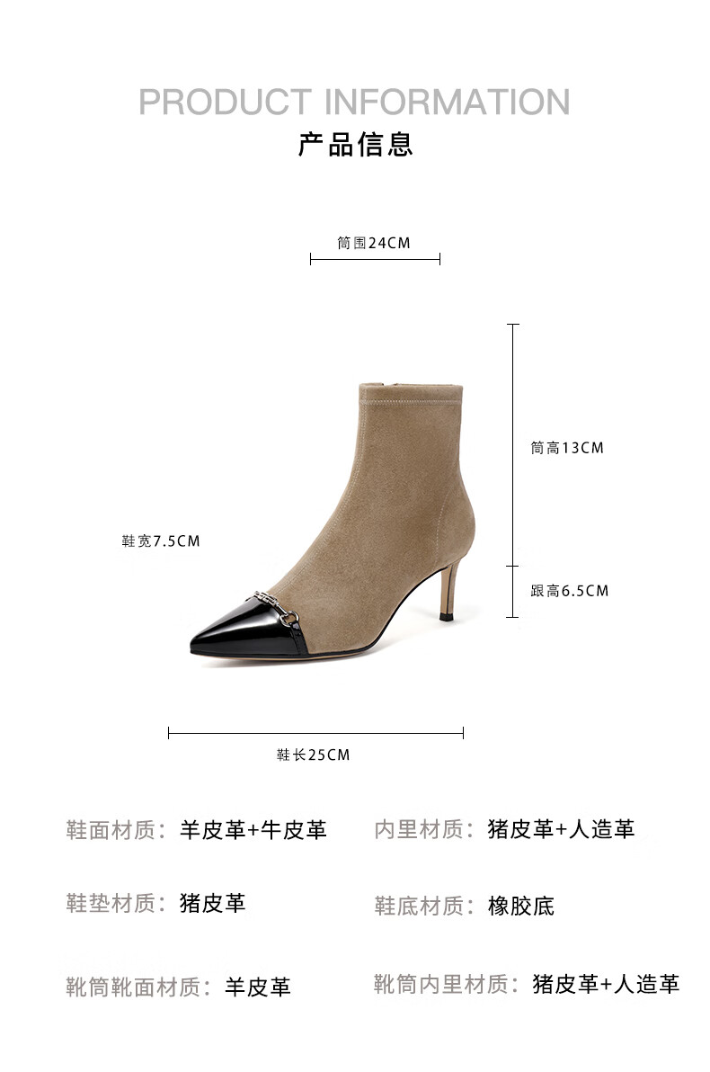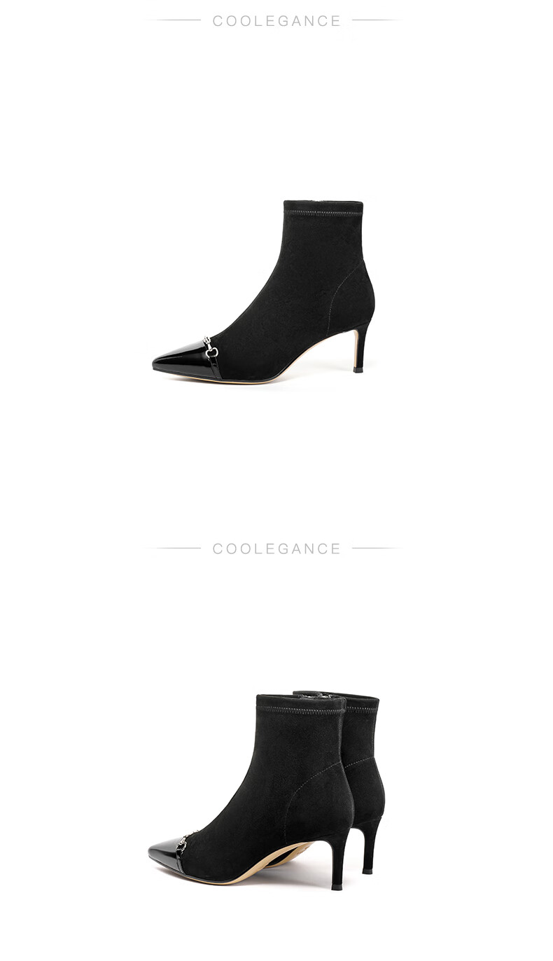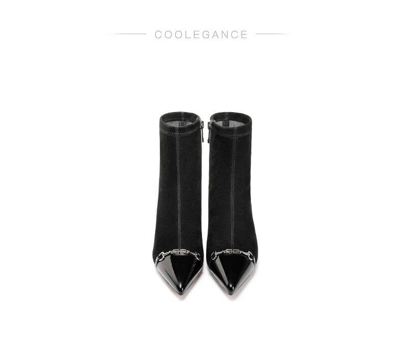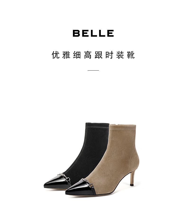 百丽尖头时装靴女2023冬季新商场同款小香风优雅短靴BCWM4DD3 黑色 33