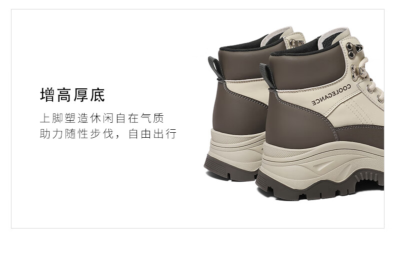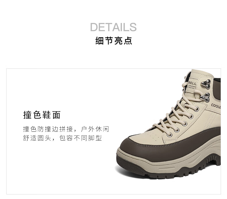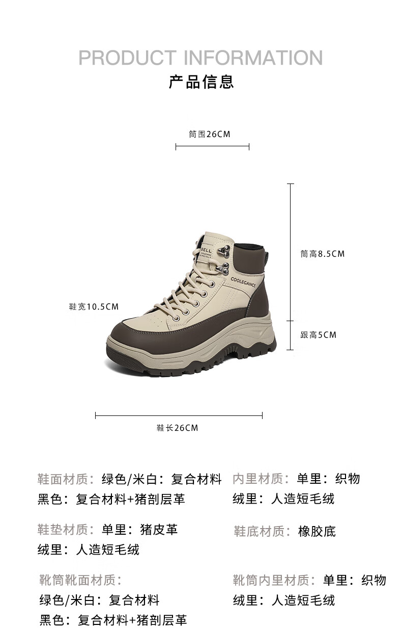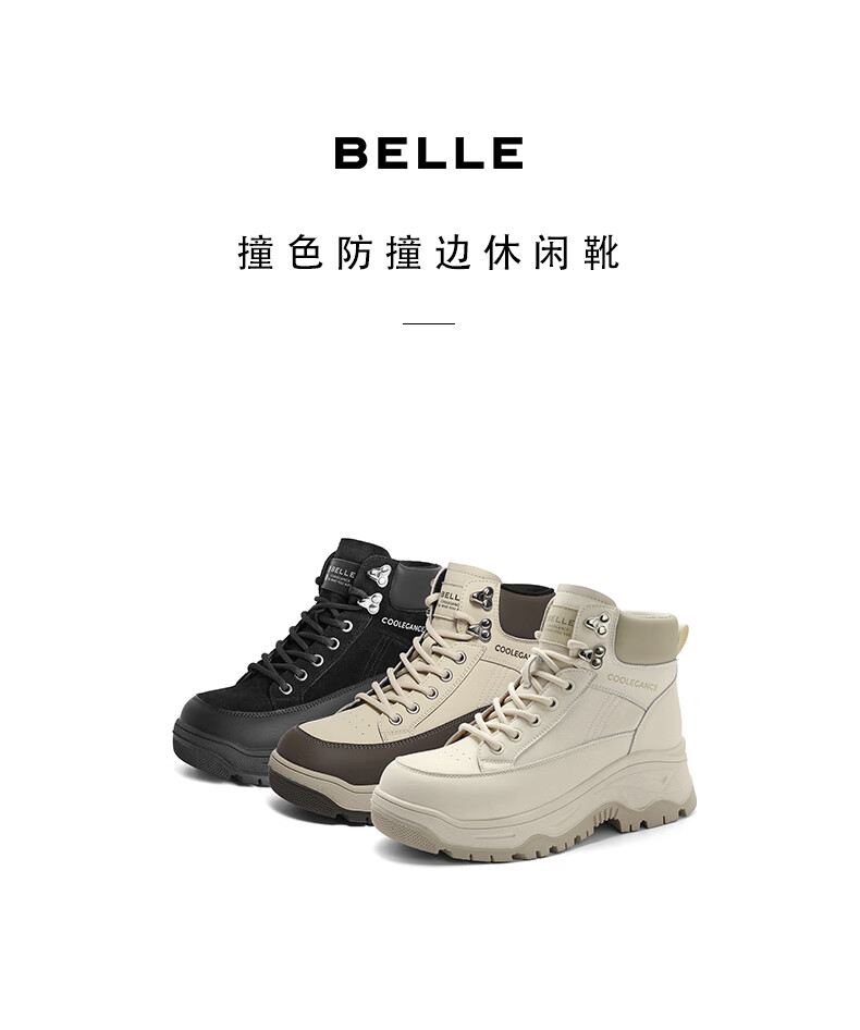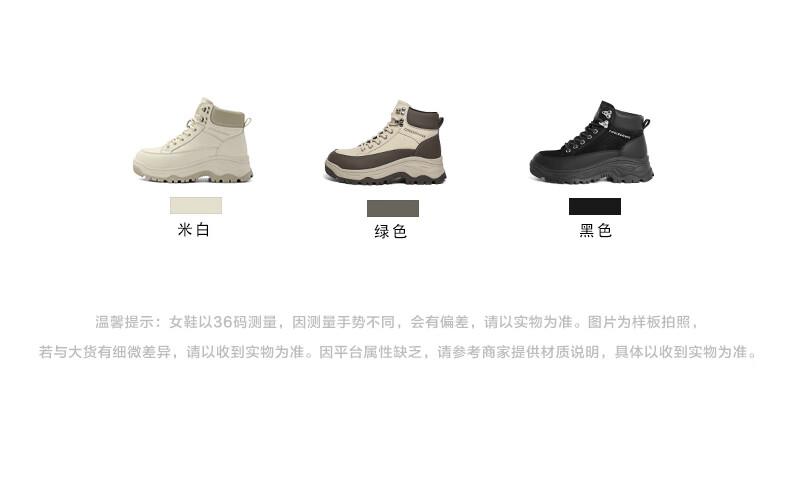百丽厚底工装靴女2023冬季新商场同款防撞边拼接休闲短靴A3C1DDM3预售 绿色-单里 34