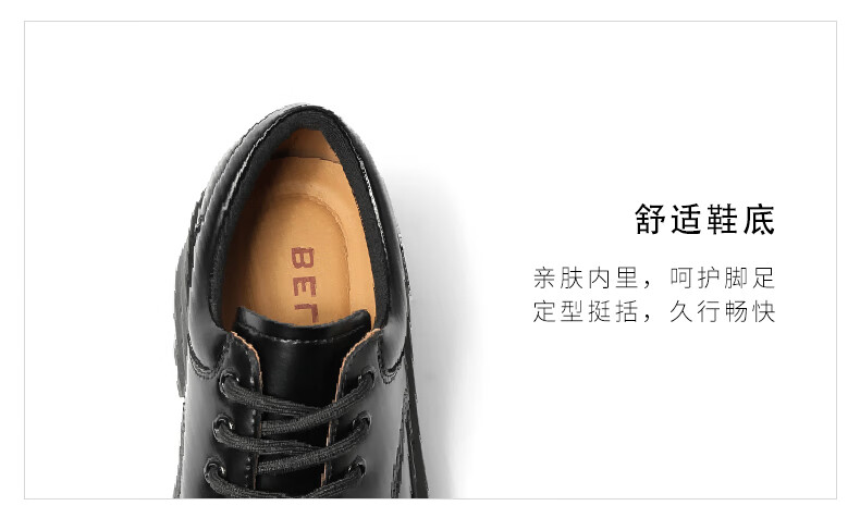 百丽牛皮商务休闲皮鞋男百搭马丁鞋子橡胶底86181CM0 黑 42
