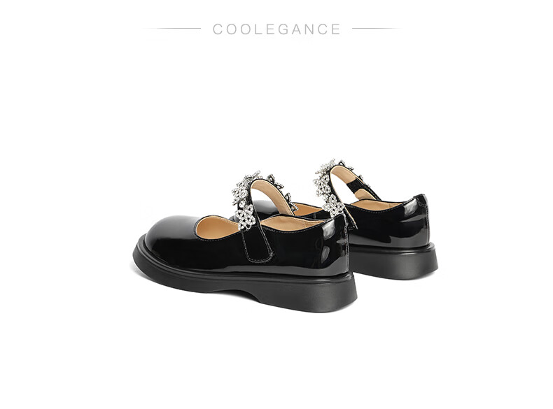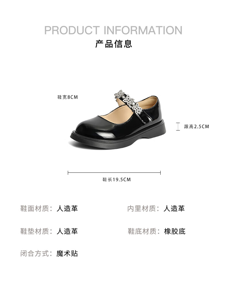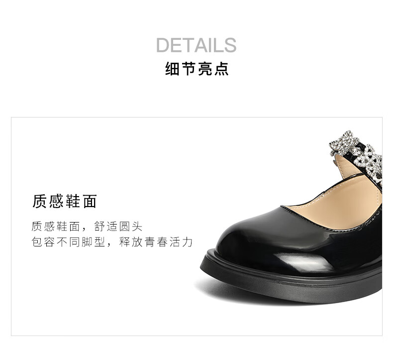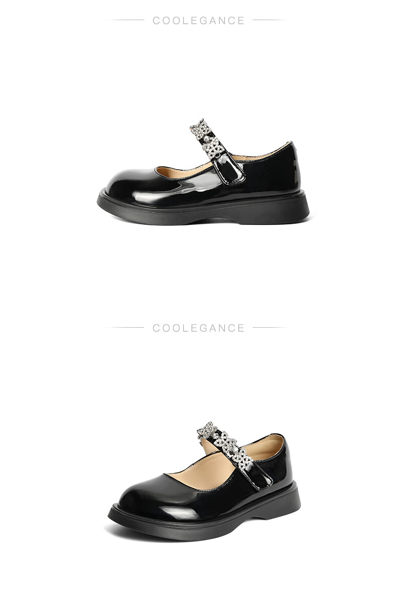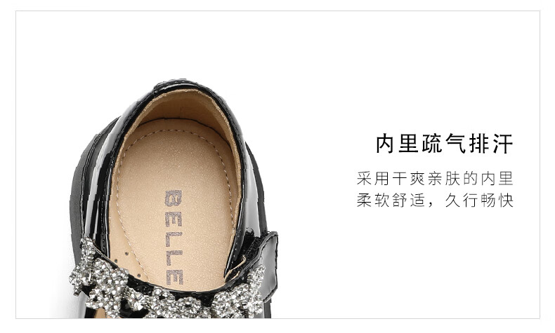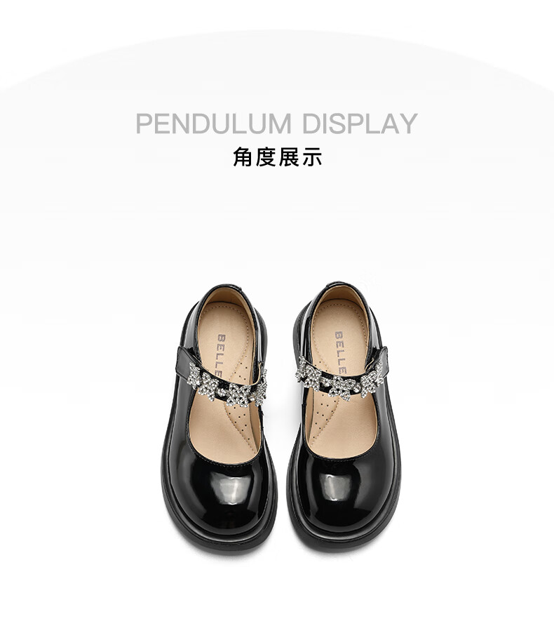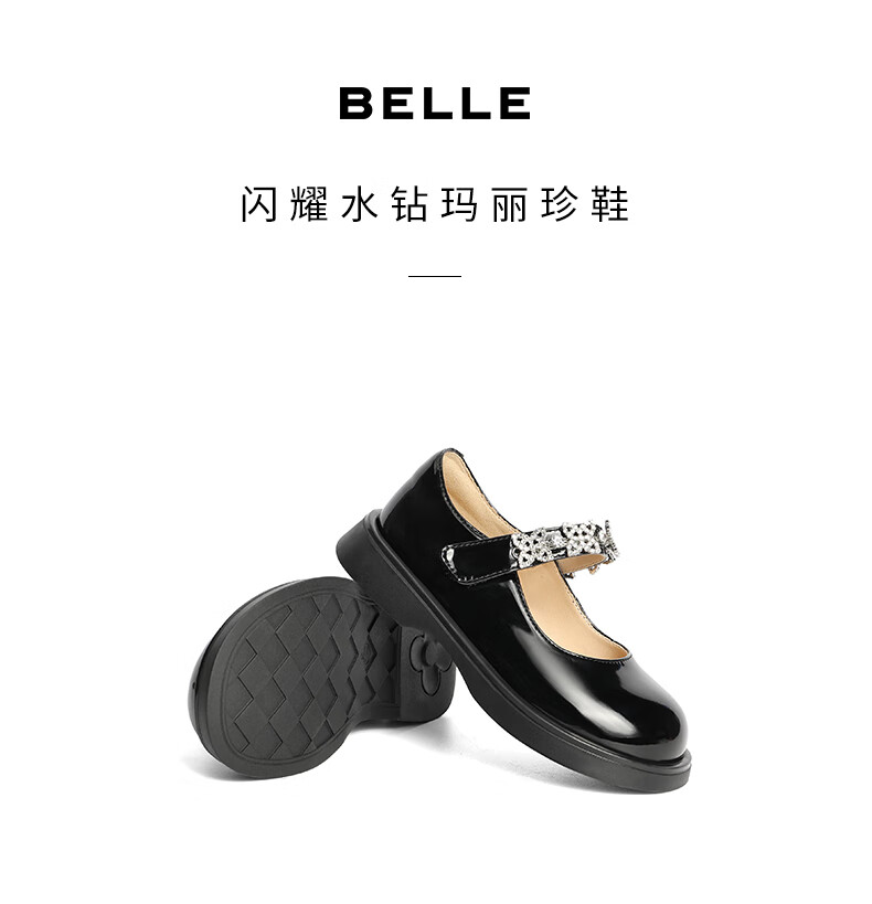 百丽玛丽珍鞋童鞋2023秋季新商场同款精致钻带魔术贴小皮鞋3NR13C83 黑色 30