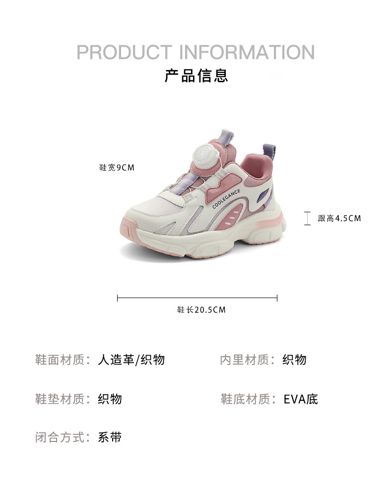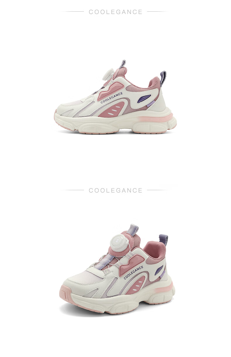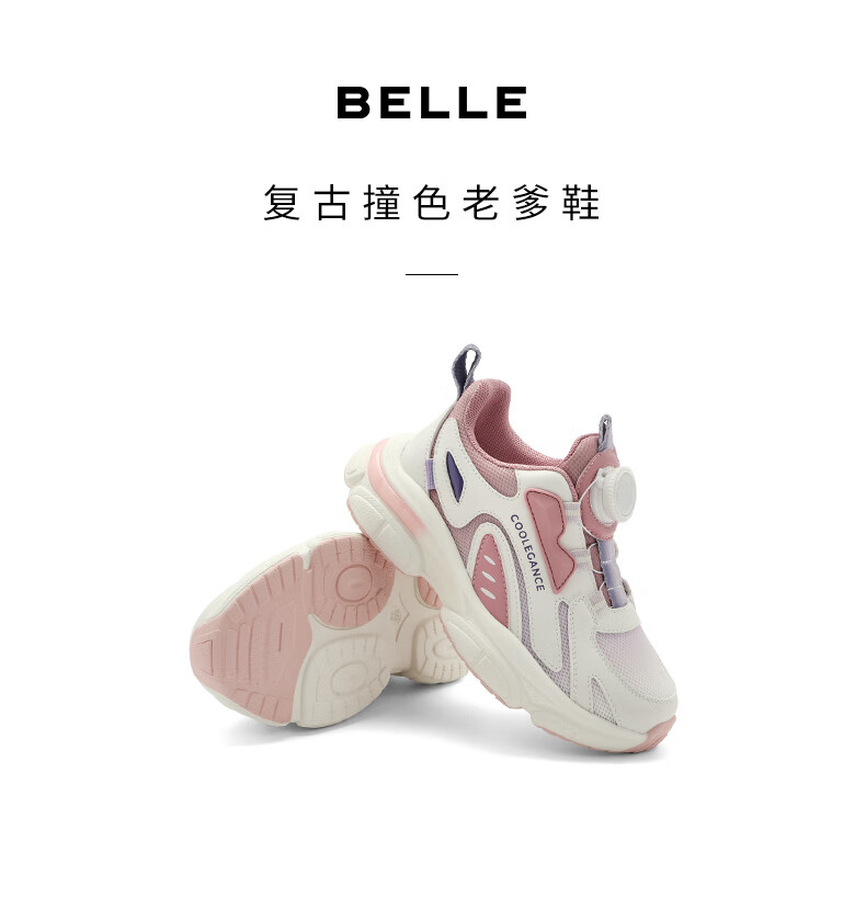 百丽复古老爹鞋童2023秋季新商场同款厚底拼色休闲运动鞋C3110C83 米色/粉色 30