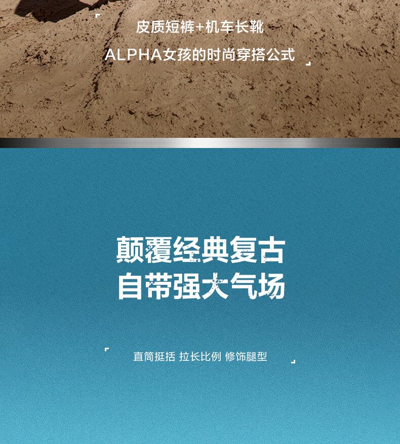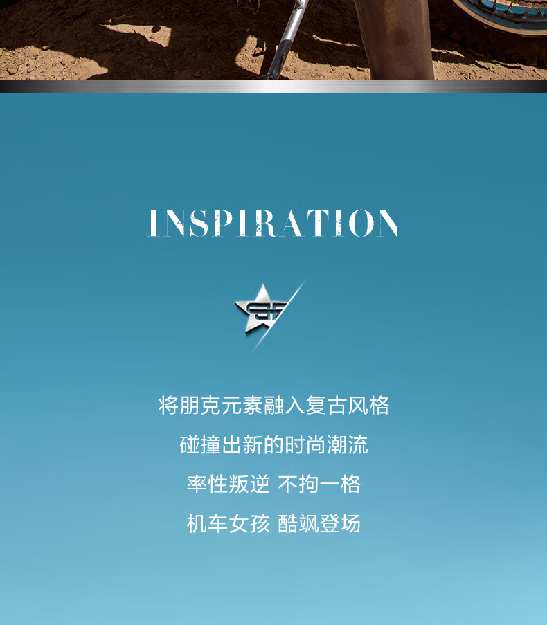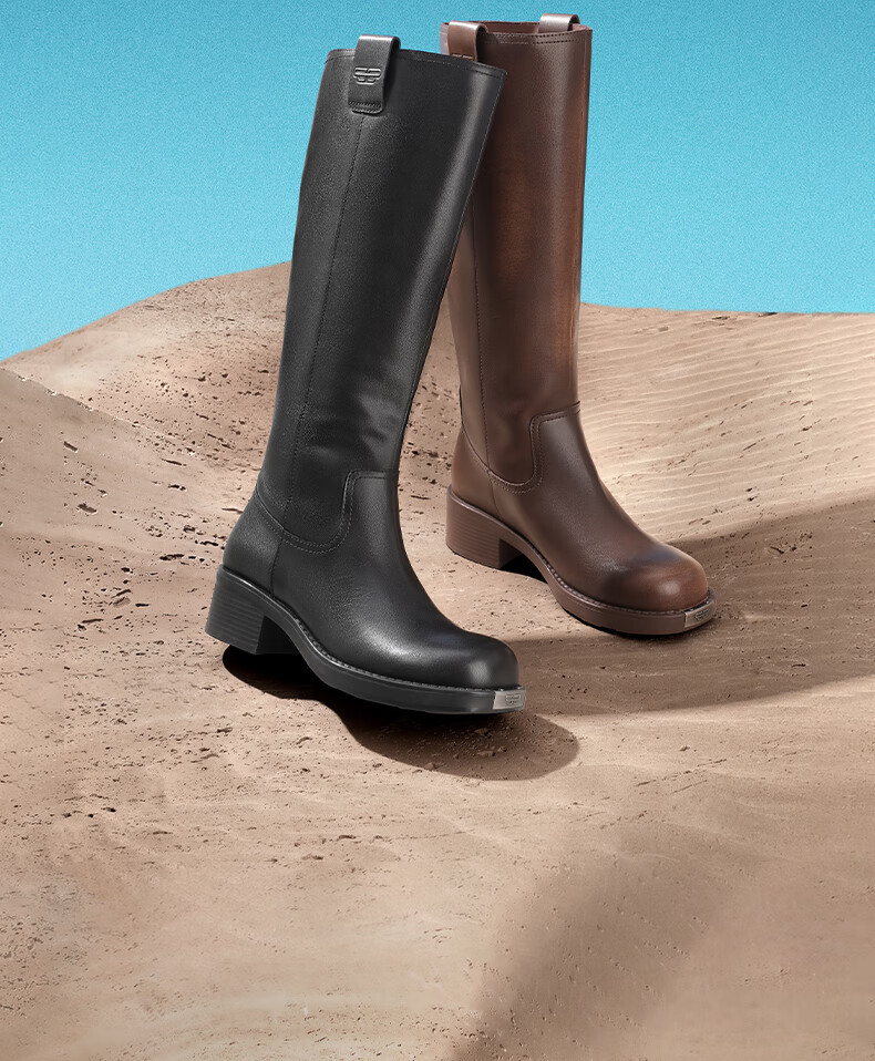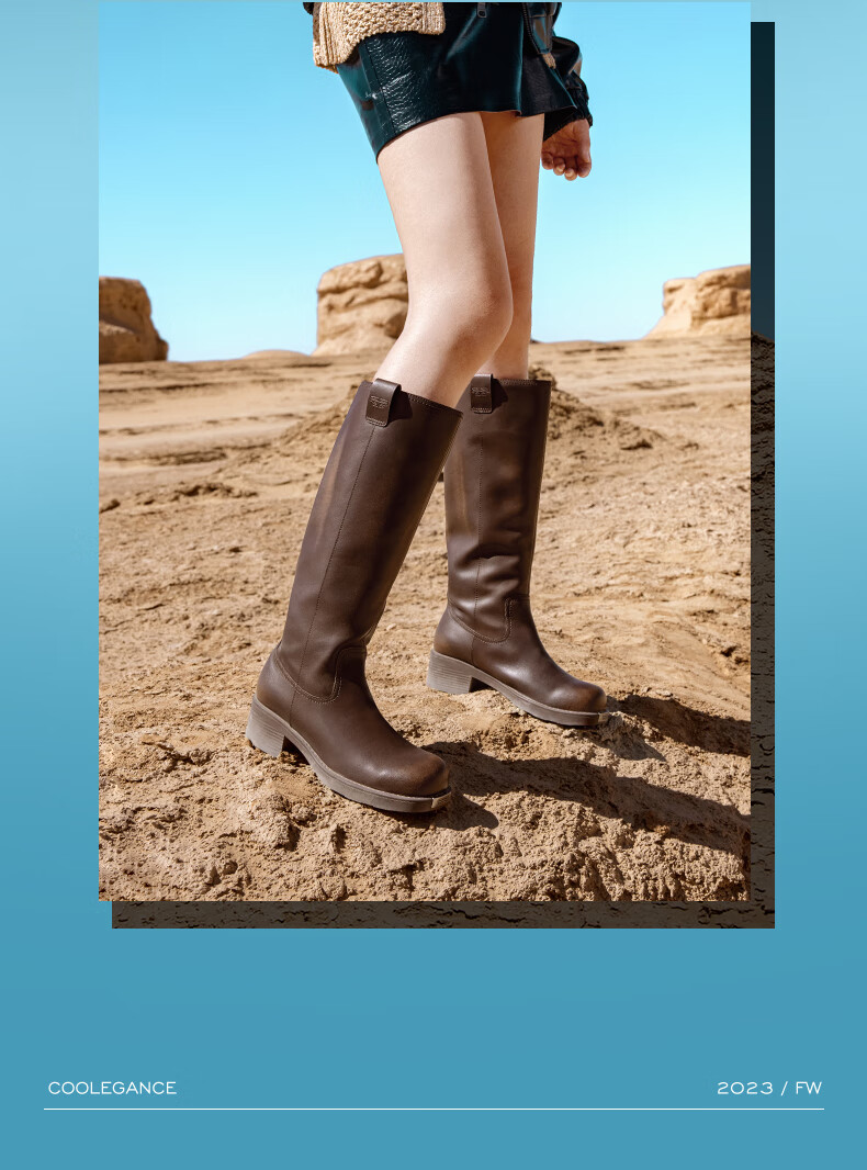 百丽擦色复古骑士靴女2023冬...