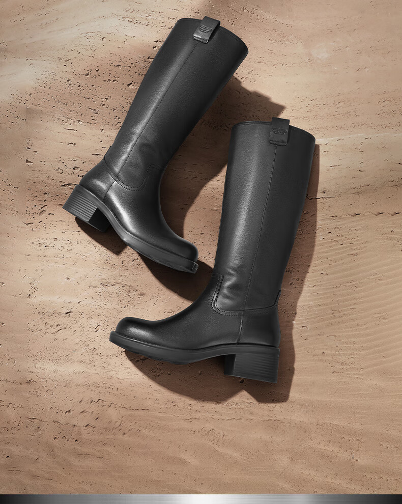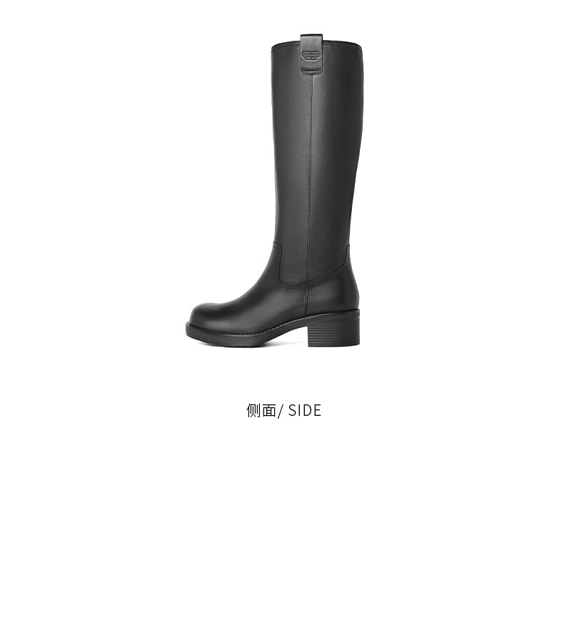 百丽擦色复古骑士靴女2023冬季新款做旧废土风长筒机车靴BAW71DG3预售 黑色 37