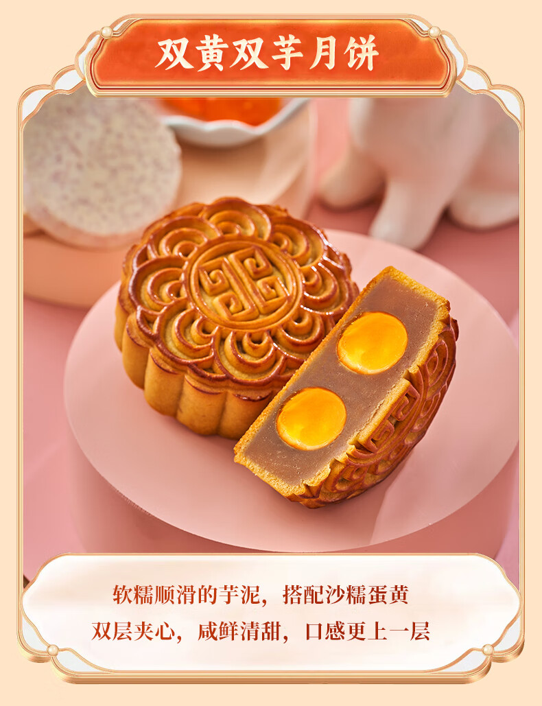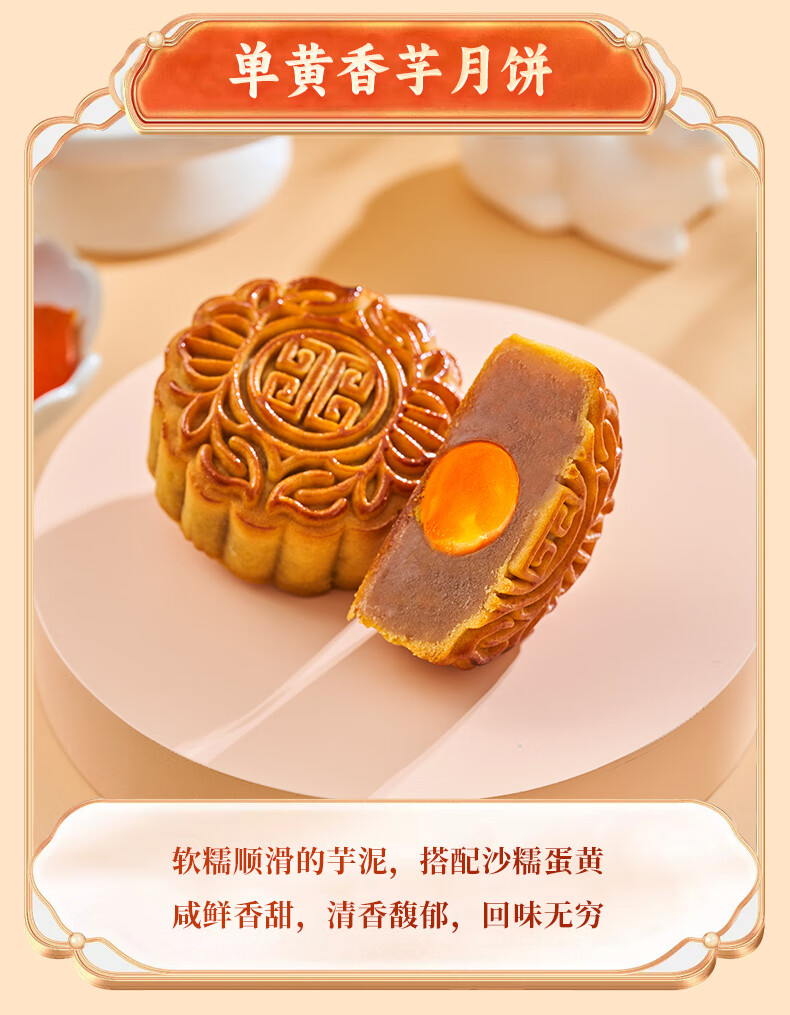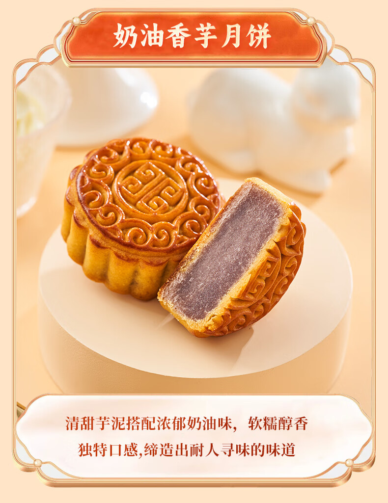 聚春园官方中秋散装奶油香芋月饼经典蛋黄白莲蓉广式豆沙老式五仁传统 奶油香芋月饼60g*3