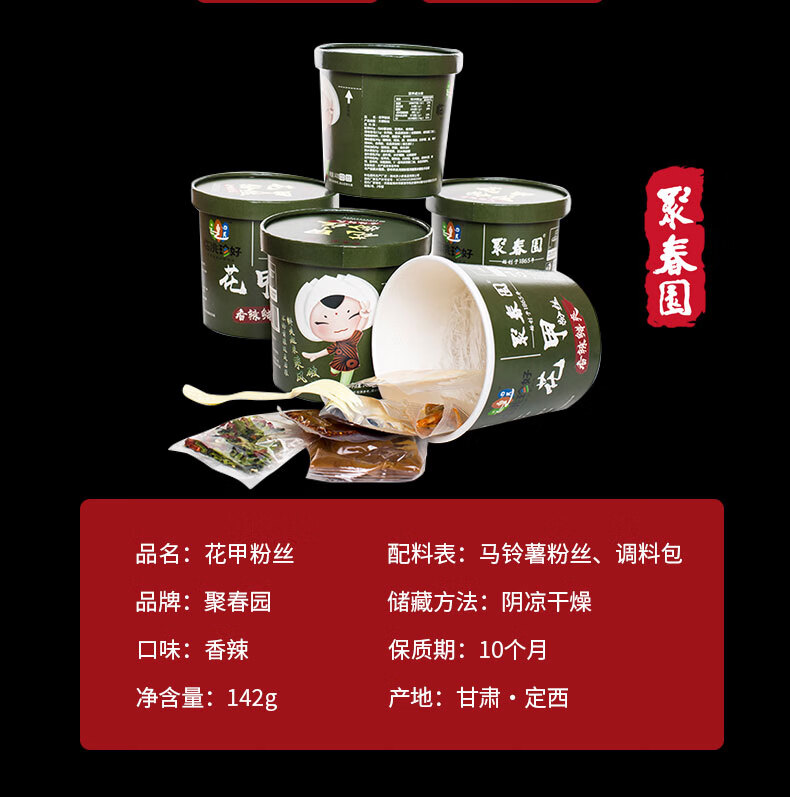 聚春园官方花甲粉桶装网红免煮方便速食粉丝即食米线土豆粉马铃薯制粉 花甲粉*6