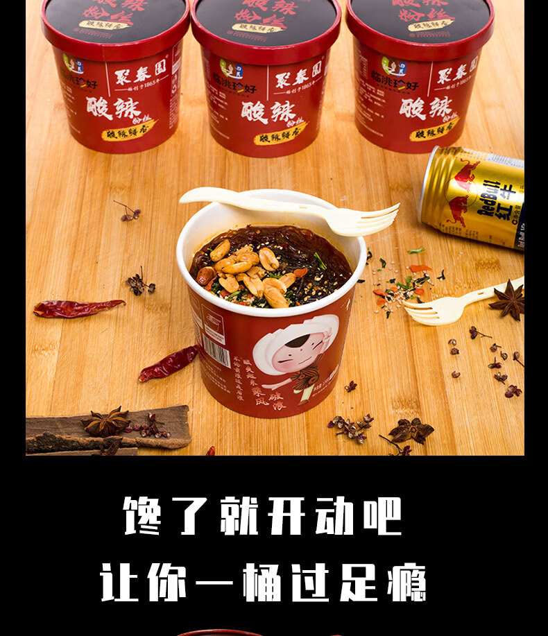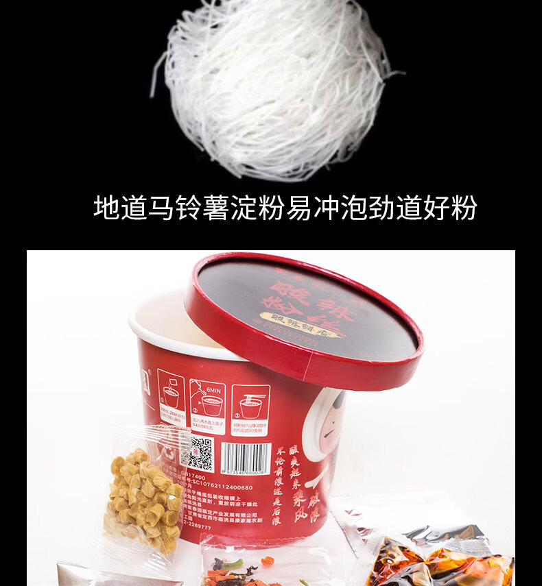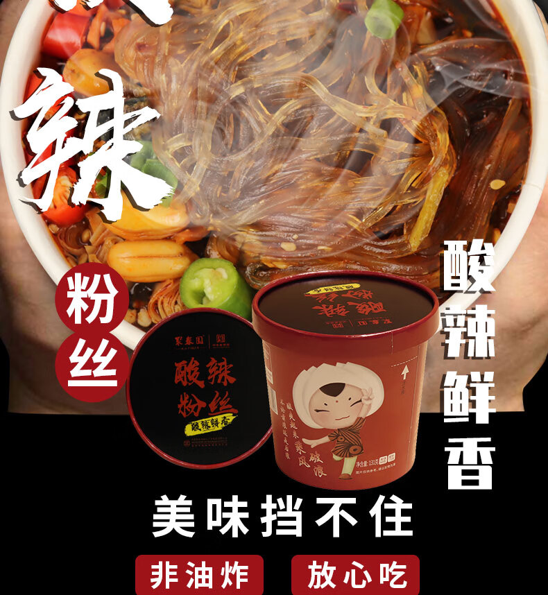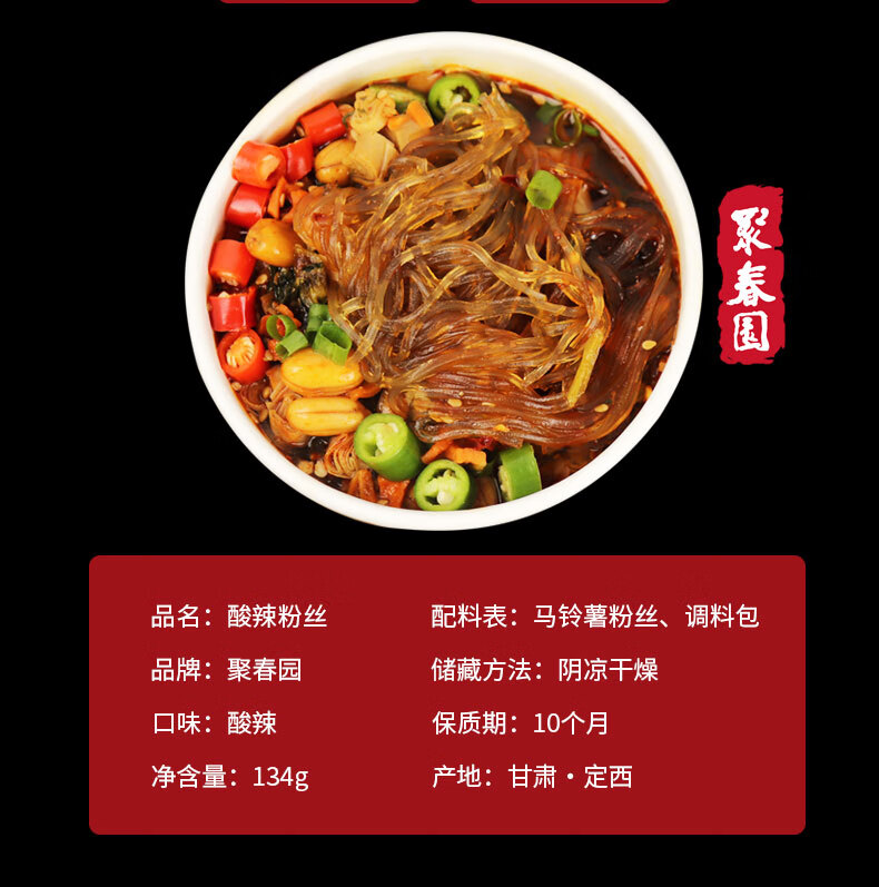 聚春园官方酸辣粉桶装网红免煮方便速食粉丝即食米线土豆粉马铃薯制粉 酸辣粉*6