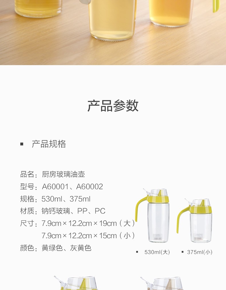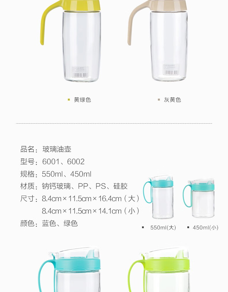 茶花(CHAHUA) 茶花油壶防漏大号玻璃油瓶酱油壶550ml 颜色随机