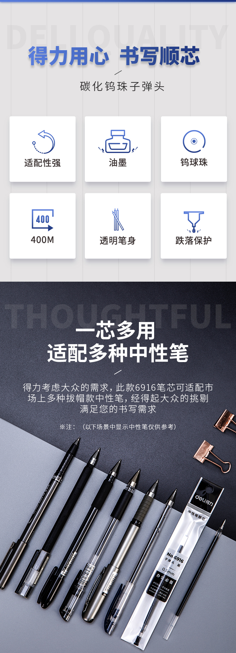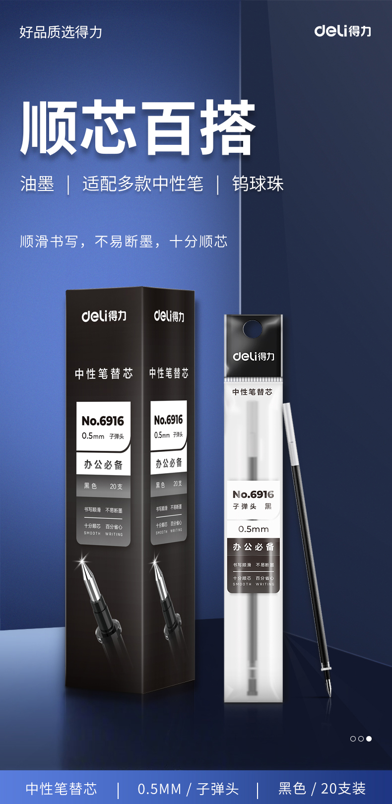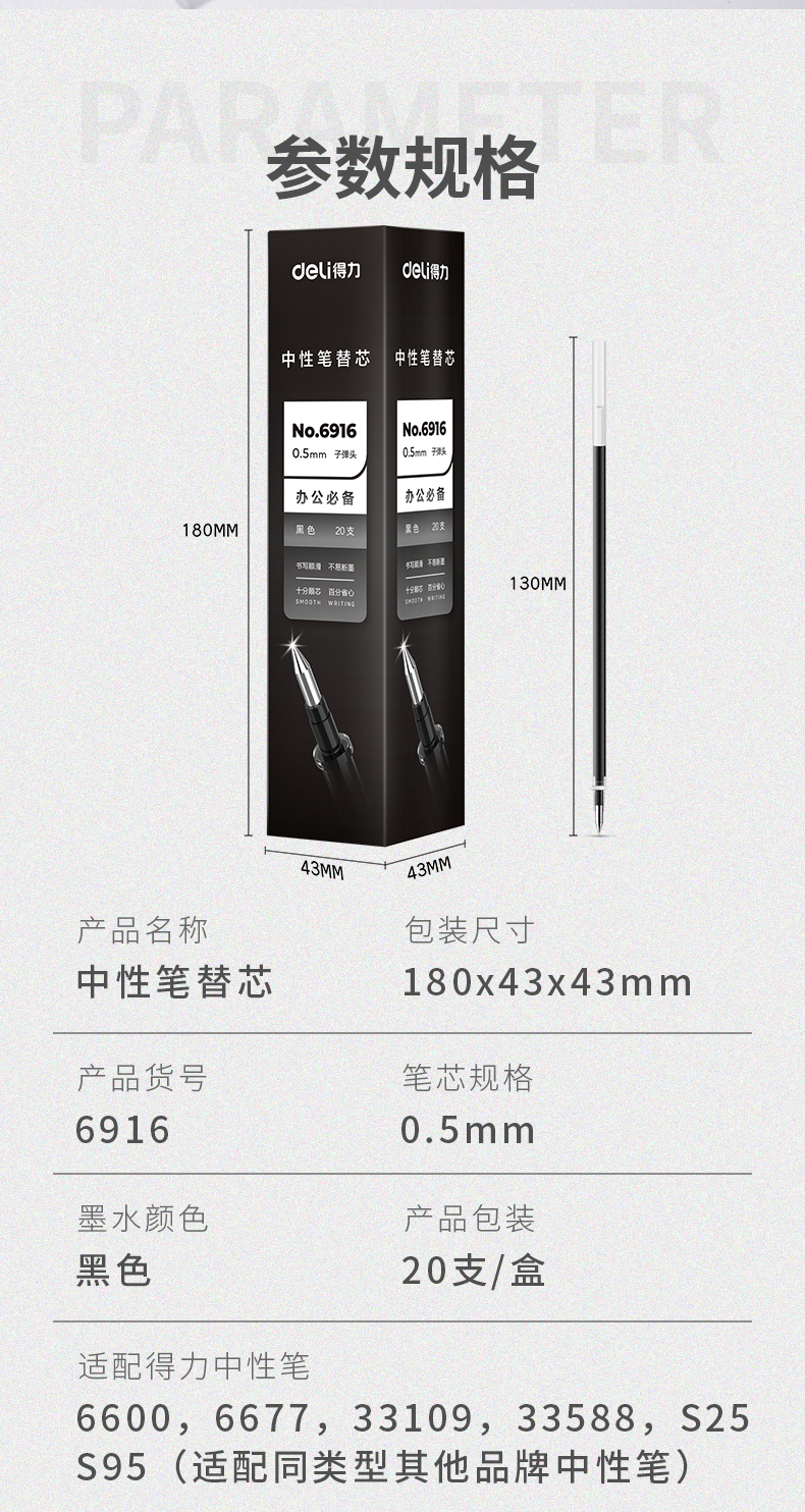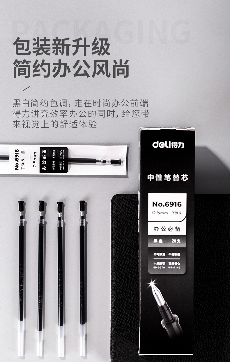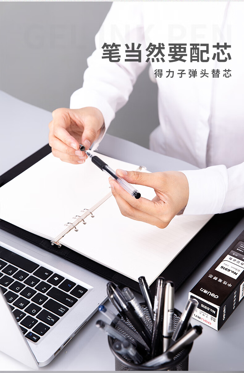 得力(deli) 中性笔芯水笔签字笔替芯 办公学生文具 20支/盒 0.5mm 黑 半针管 6901