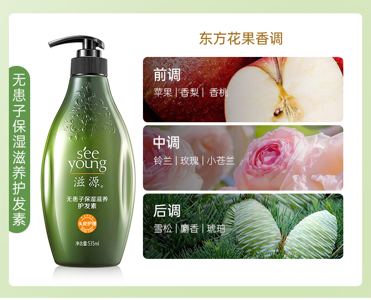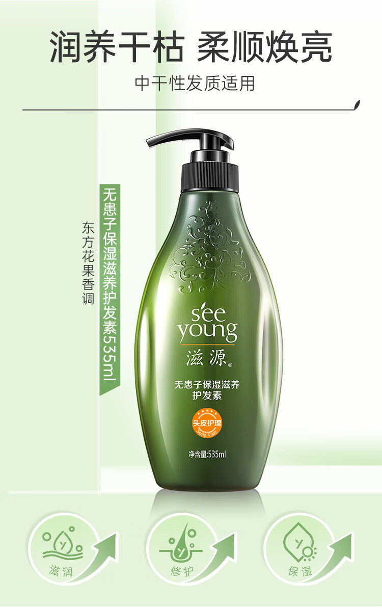 滋源无患子保湿滋养护发素无硅油润养柔顺焕亮男女润发乳中干性535ml