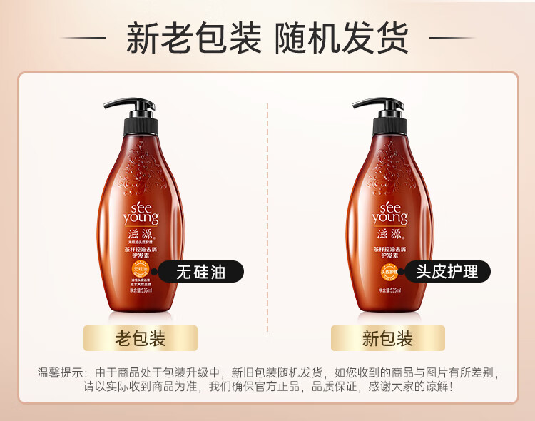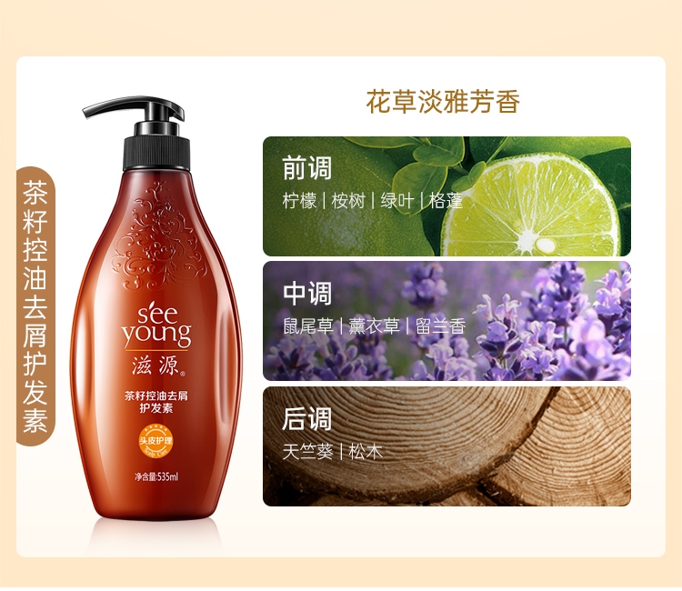 滋源茶籽控油去屑护发素轻盈顺滑润泽毛躁无硅油润发乳女士535ml