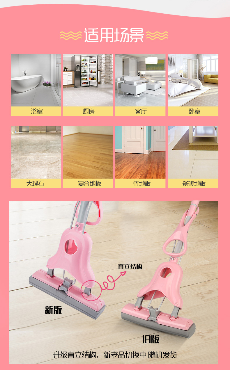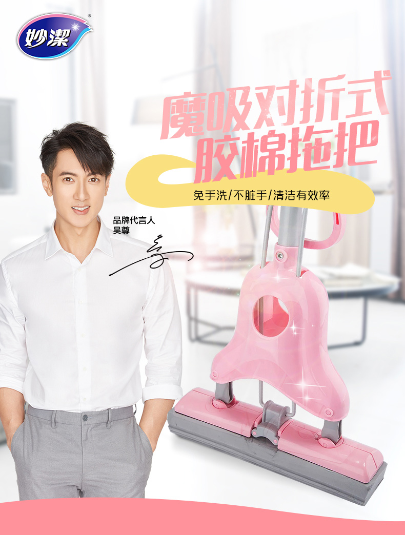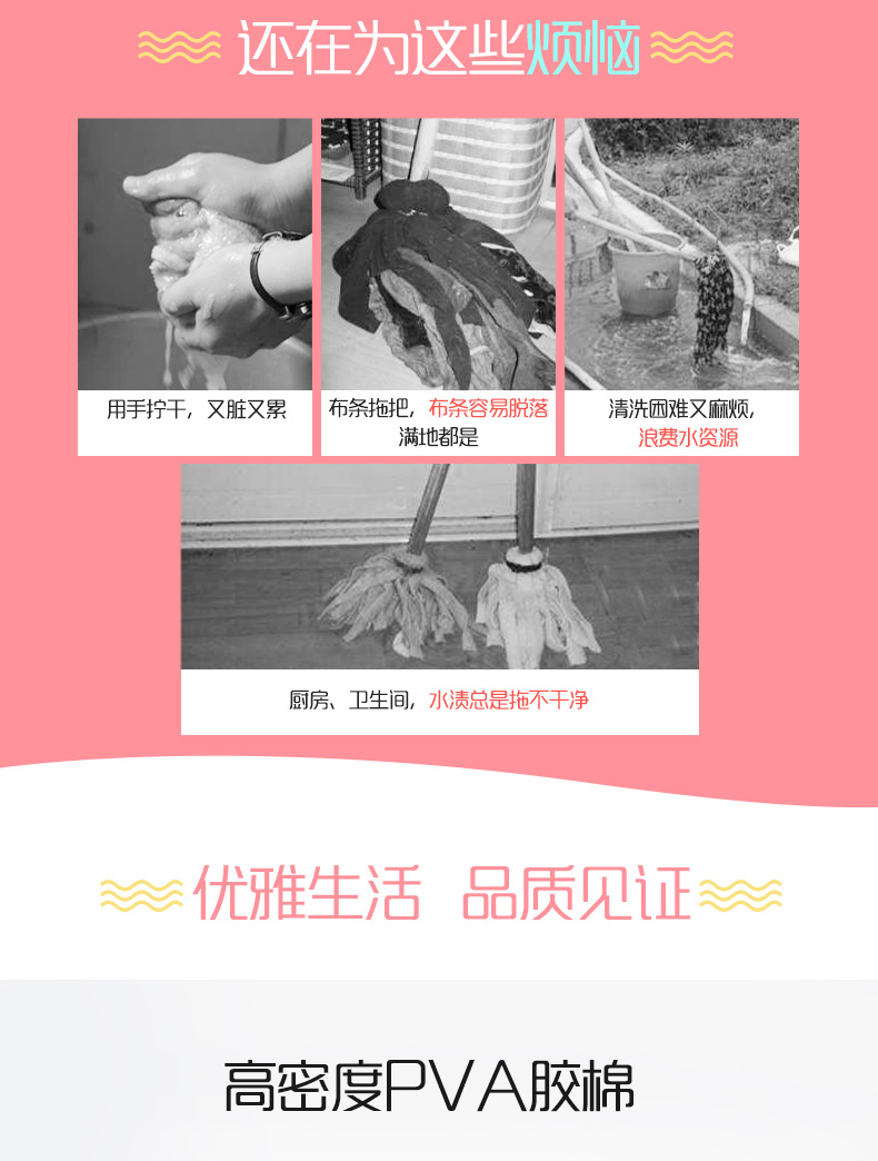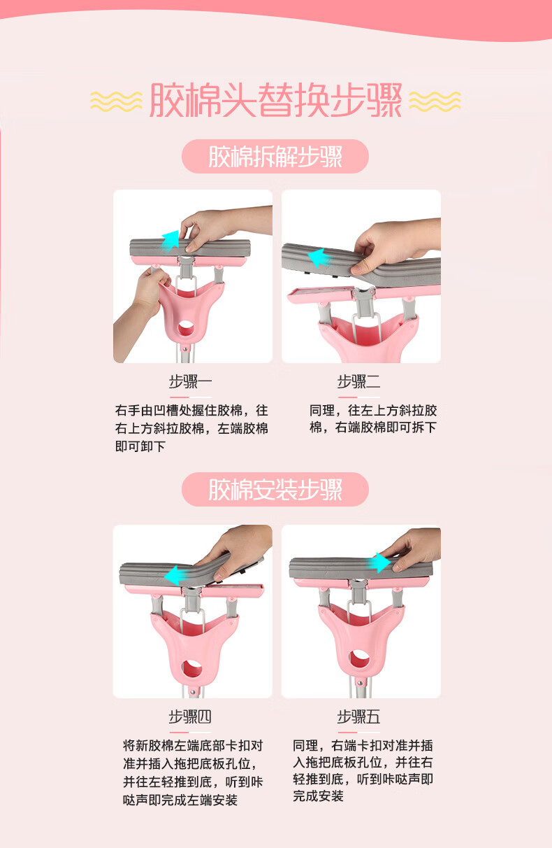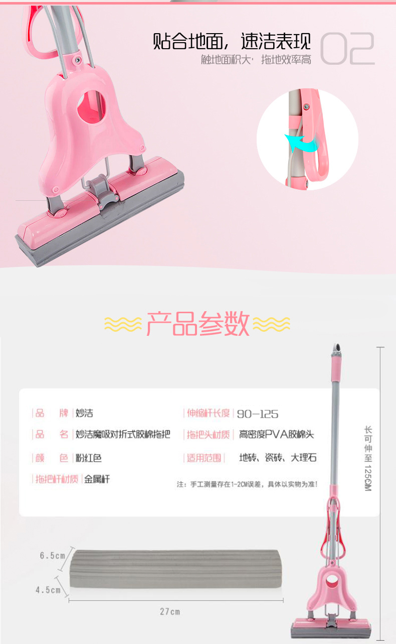 妙洁 海绵拖把 共2个替换头 家用一拖净 吸水胶棉墩布 懒人免手洗