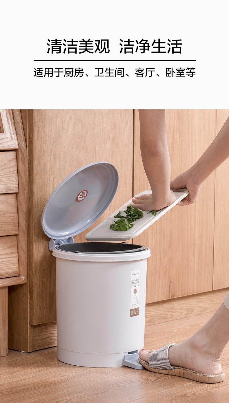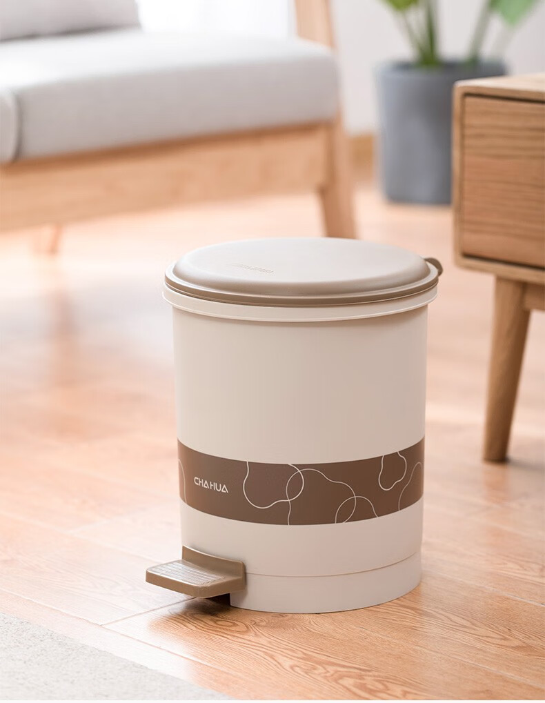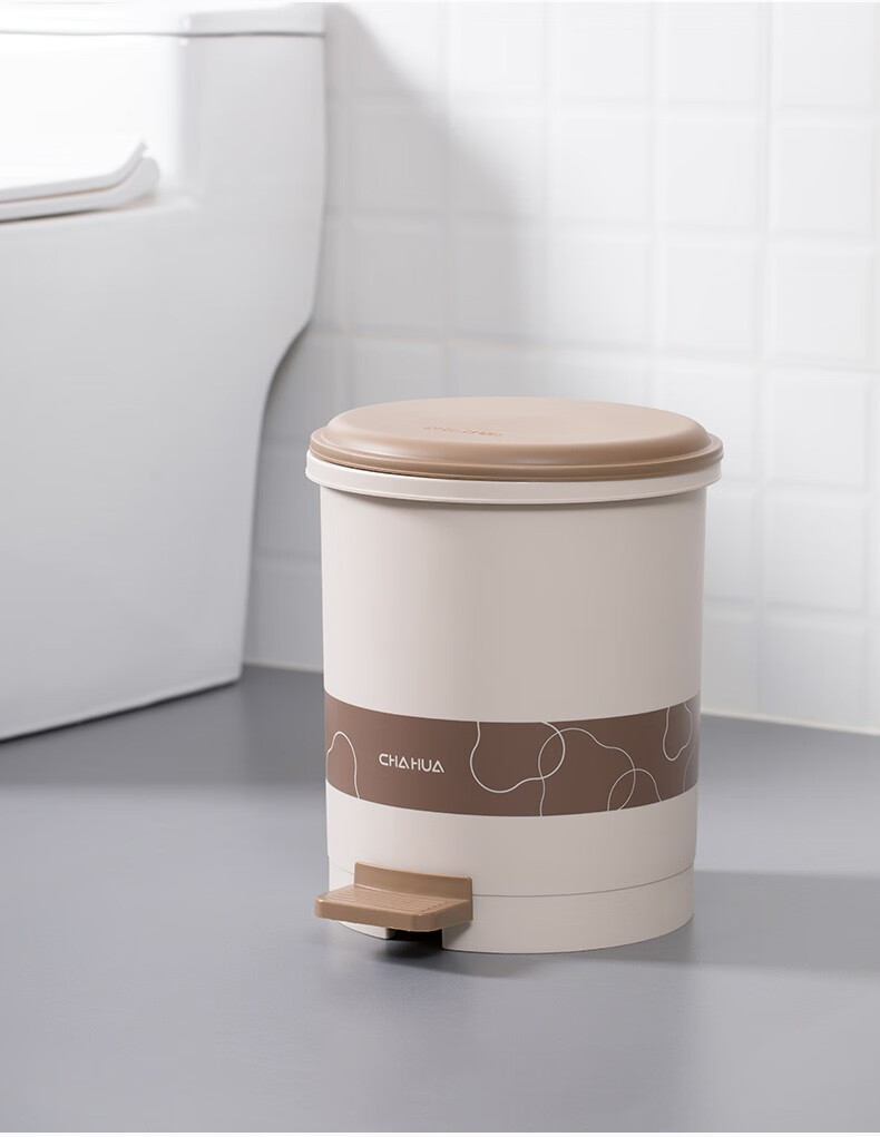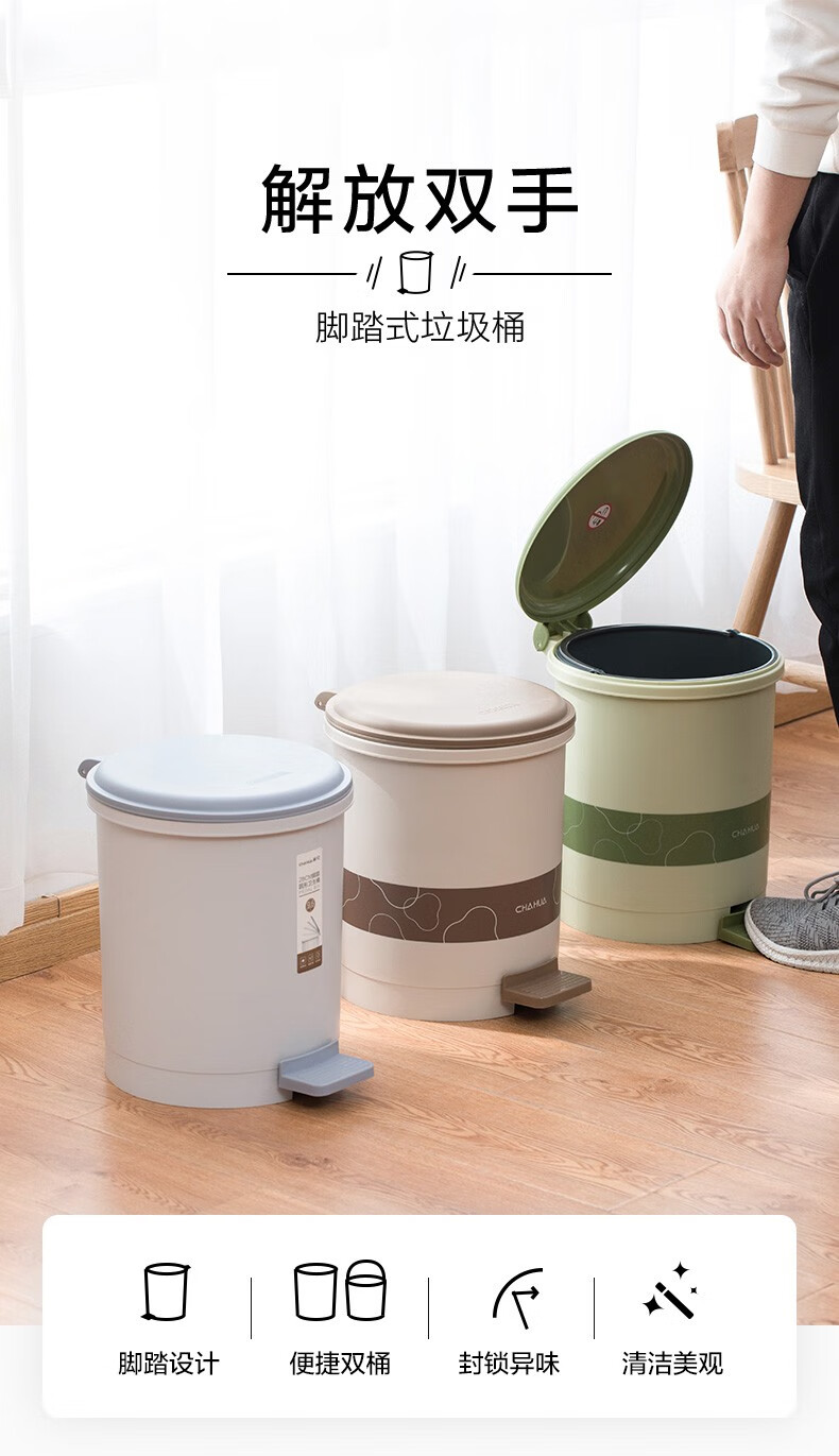 茶花(CHAHUA)塑料垃圾桶家用卫生间带盖客厅厕所卧室厨房 15011KB 1个装 颜色随机