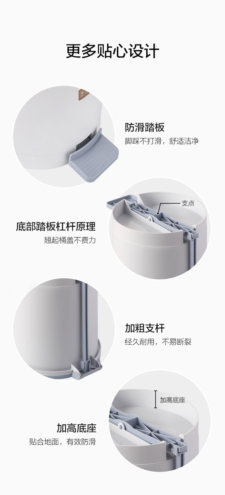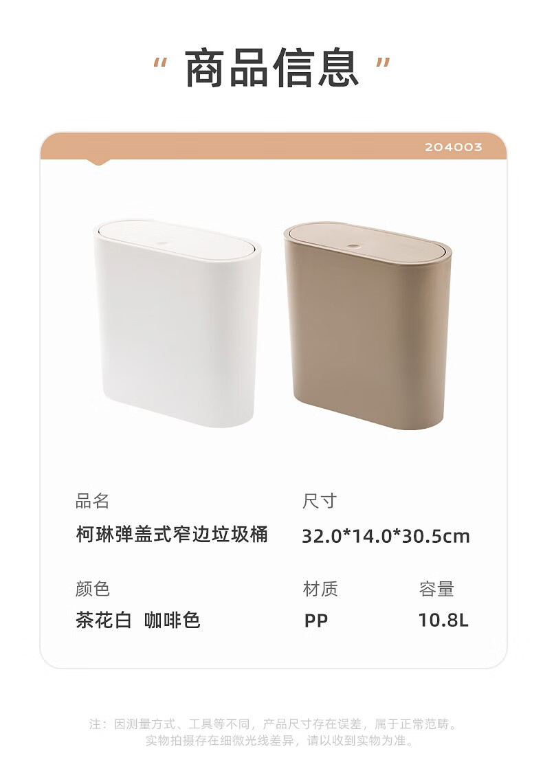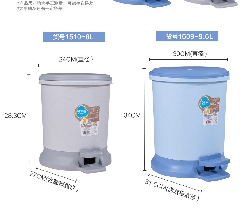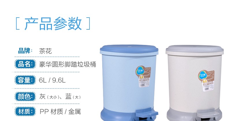 茶花(CHAHUA)塑料垃圾桶家用卫生间带盖客厅厕所卧室厨房 15011KB 1个装 颜色随机