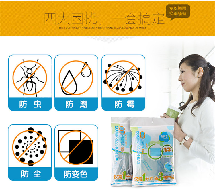 茶花(CHAHUA)茶花收纳袋加厚真空压缩袋棉被子衣服储物袋 【3326】大号100x80cm两枚无气泵