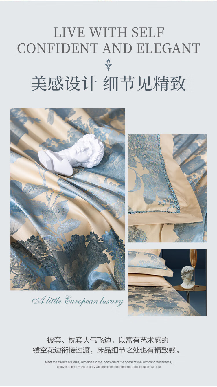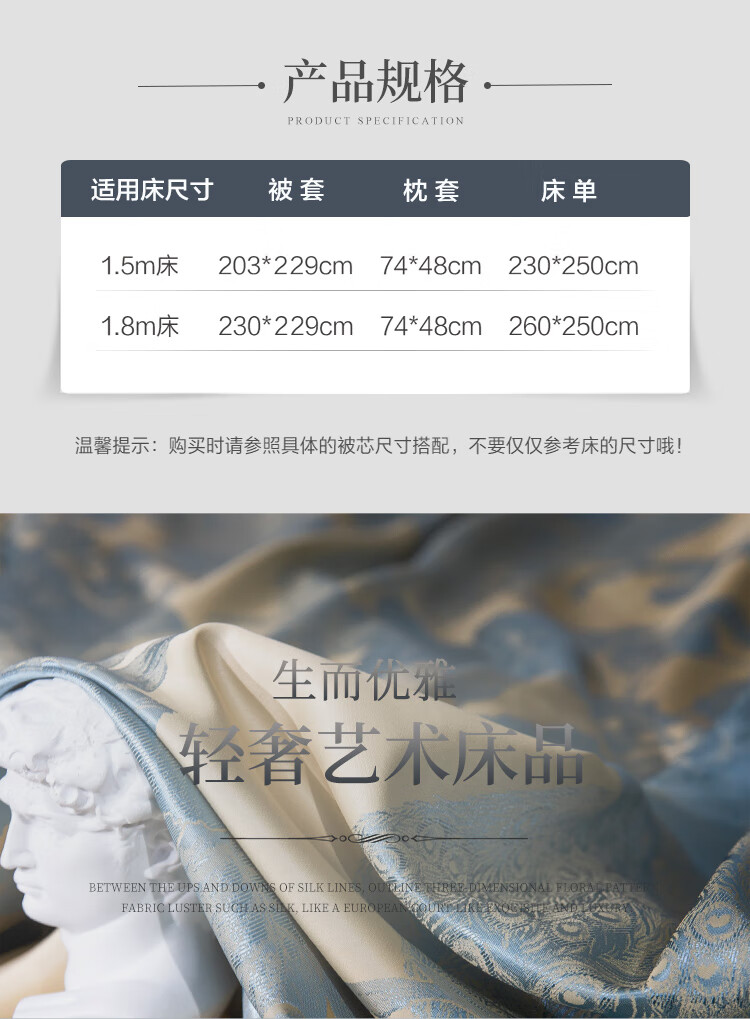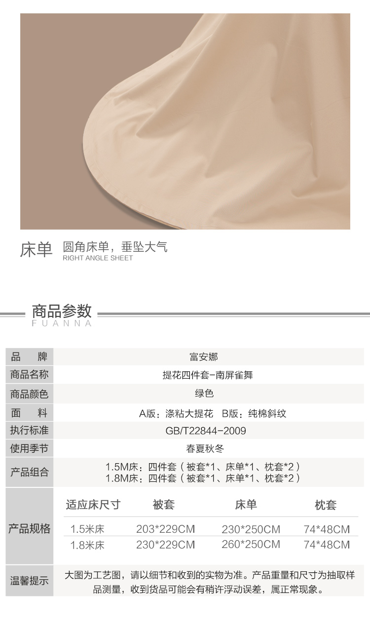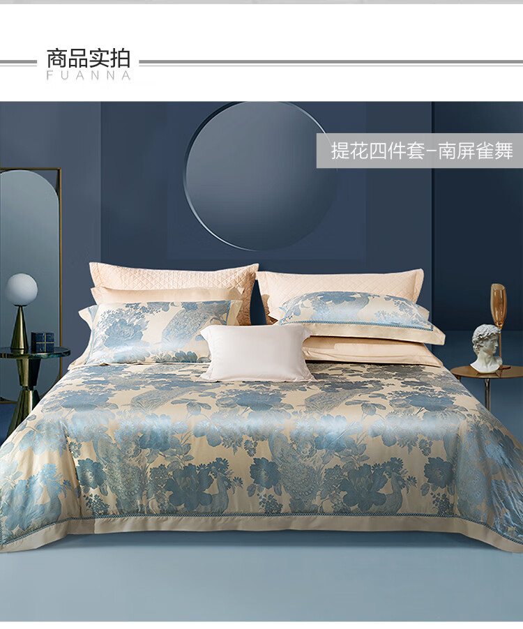 富安娜大提花床上四件套欧式轻奢高档床品套件 纯棉床单 (230*229cm)绿