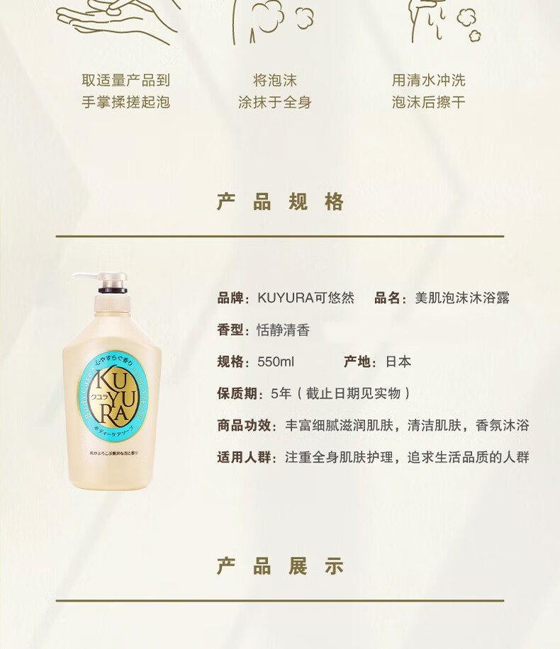 可悠然沐浴露大黄瓶550ml 美肌香氛滋润保湿 男女通用香味持久沐浴乳
