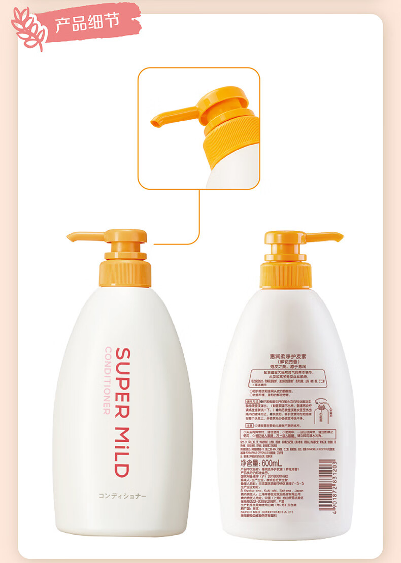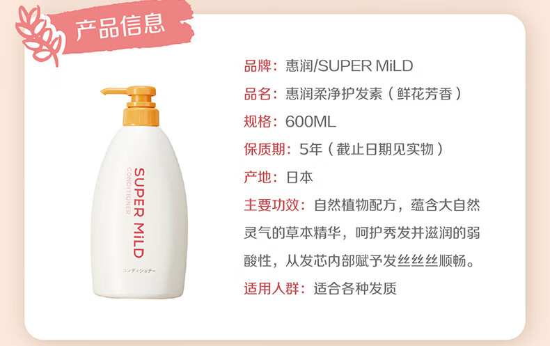 惠润(SUPER MiLD)护发素柔净鲜花芳香润发乳600ml男女通用去毛躁护发乳