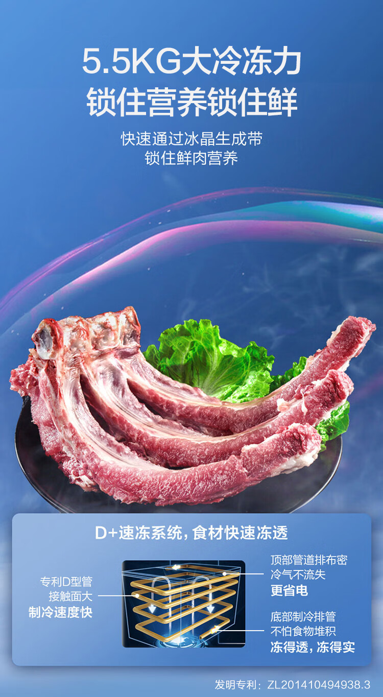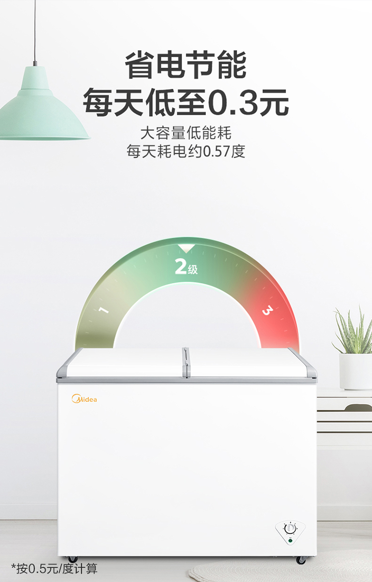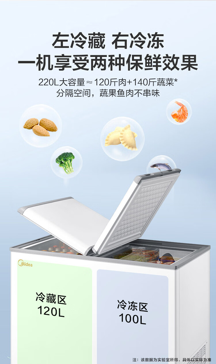 美的(Midea)220升 家用商用囤货双温冰柜 双箱双温冷柜 蝶形门冷藏冷冻卧式冰箱 BCD-220VM(E)