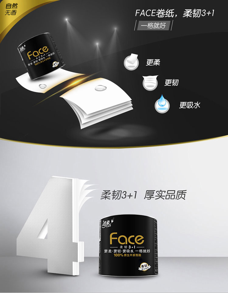洁柔卷纸 黑Face加厚4层180g卫生纸巾*23卷 母婴可用 冲厕易降解