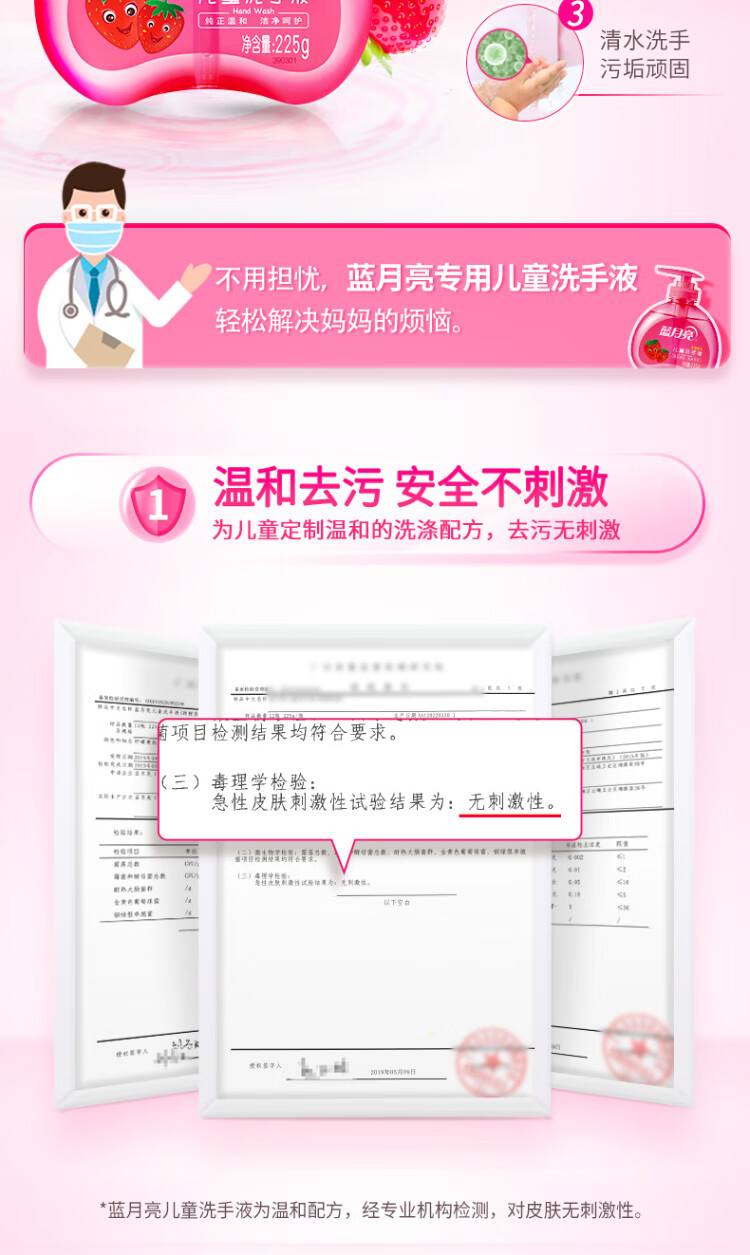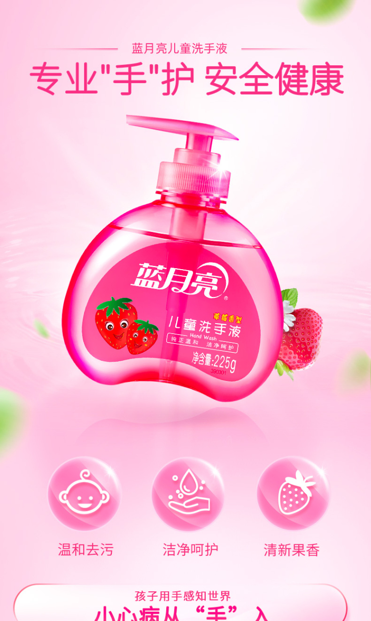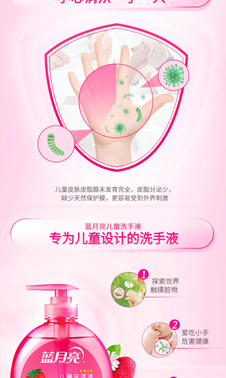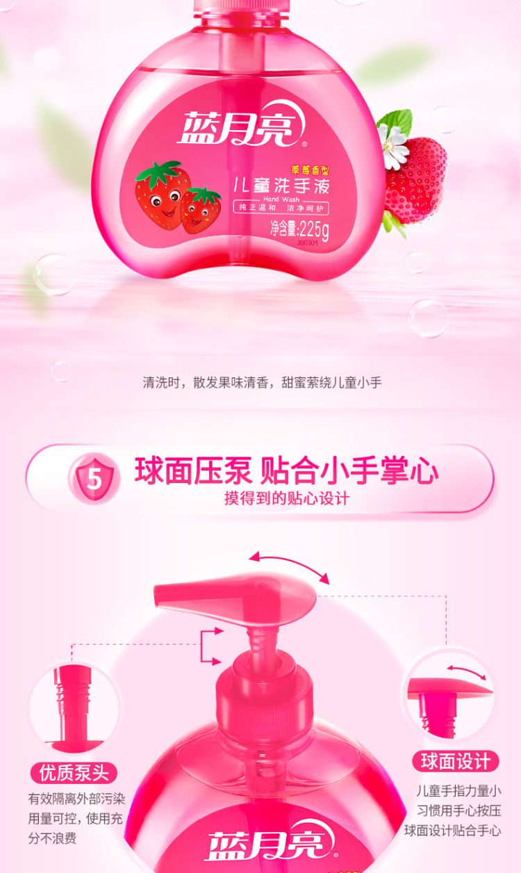 蓝月亮儿童洗手液225g/瓶(草莓果香)温和去污 宝宝洗手液 泡沫丰富