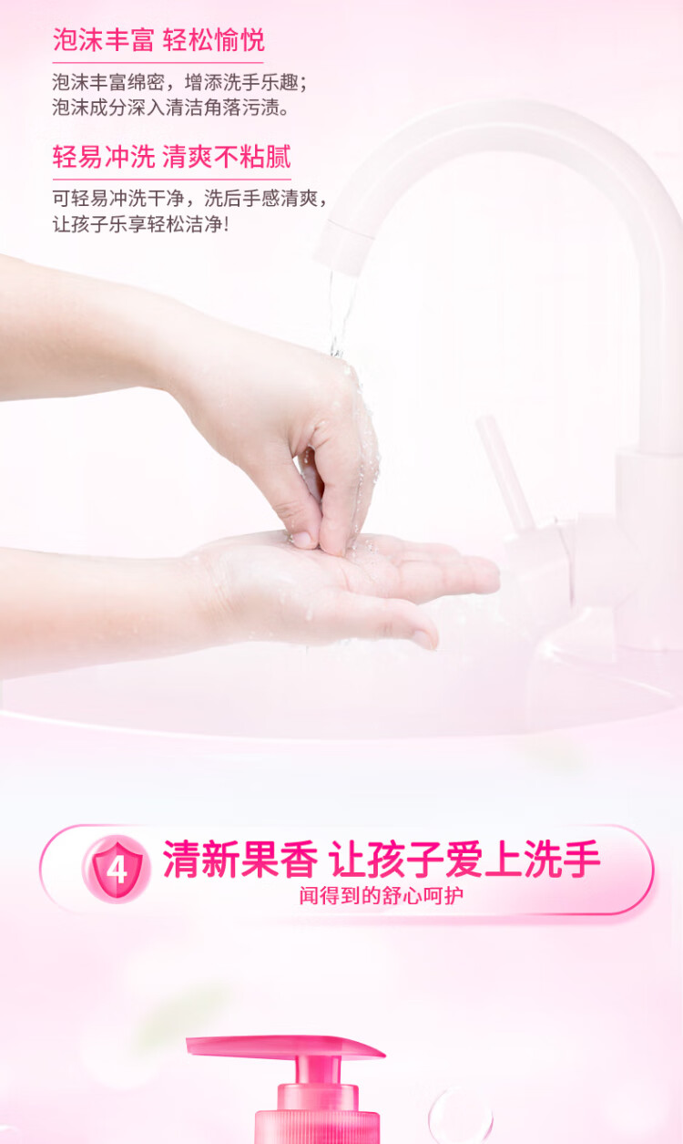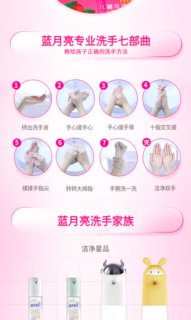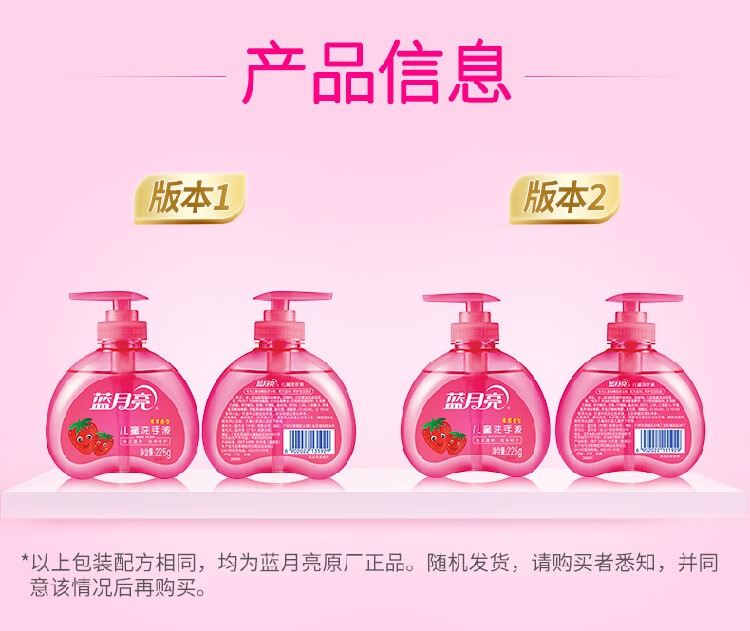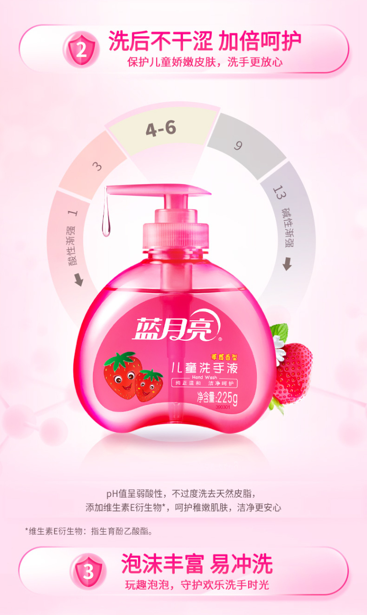 蓝月亮儿童洗手液225g/瓶(草莓果香)温和去污 宝宝洗手液 泡沫丰富
