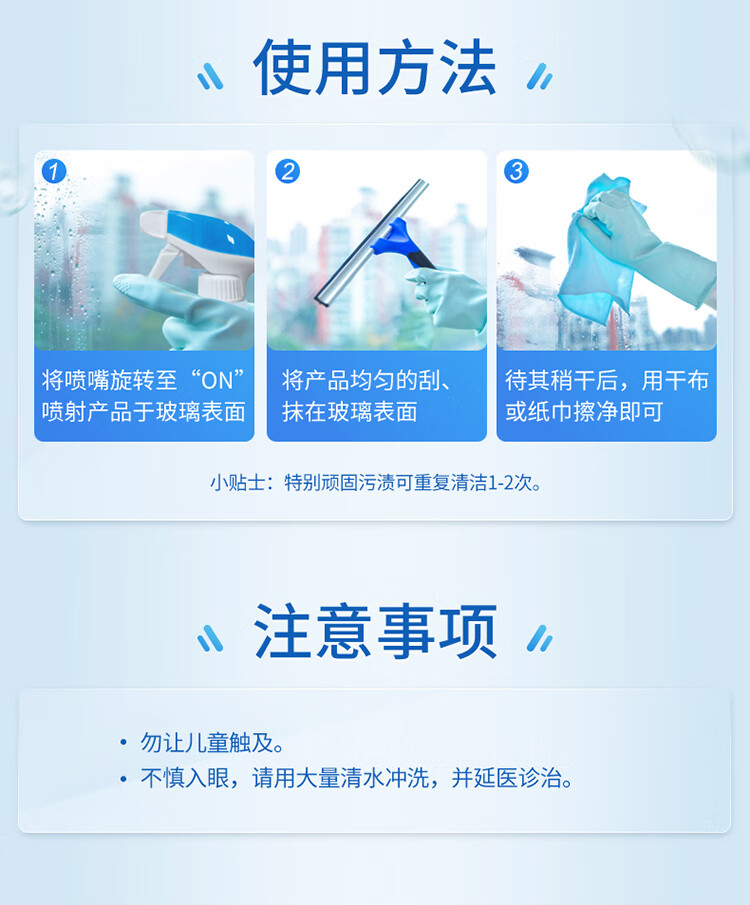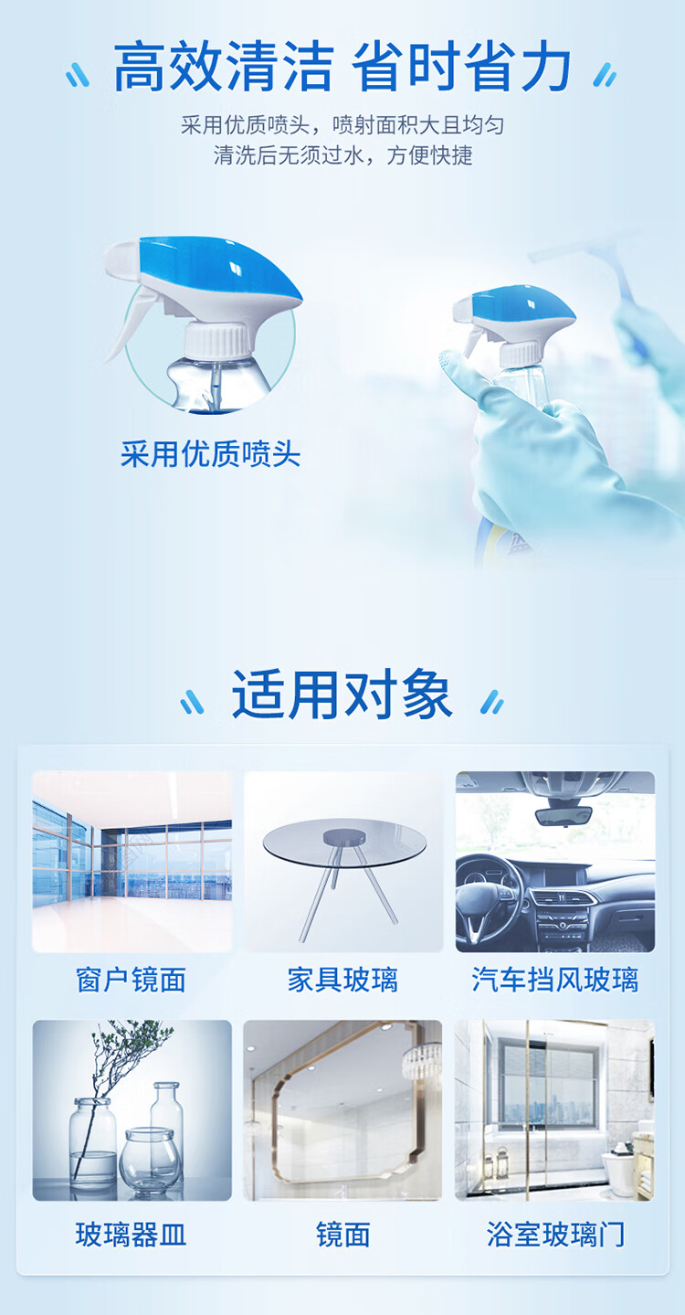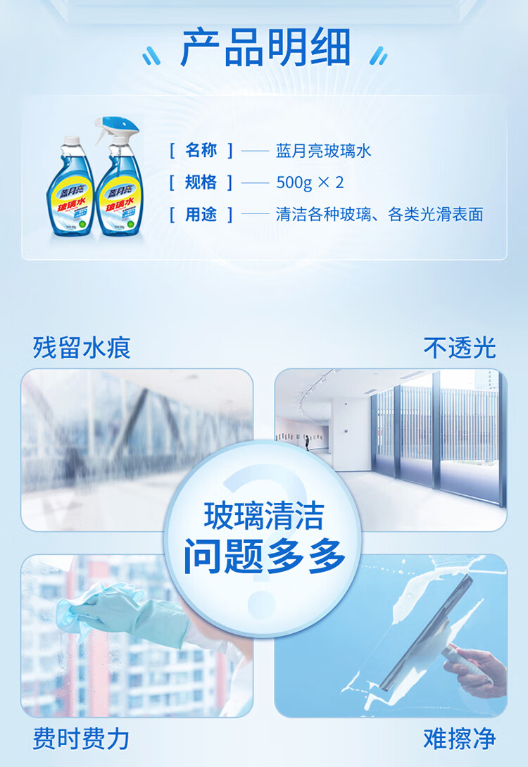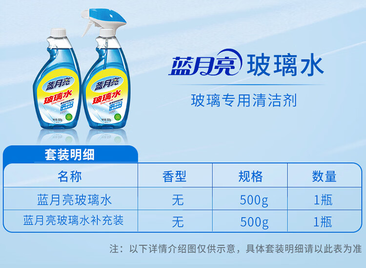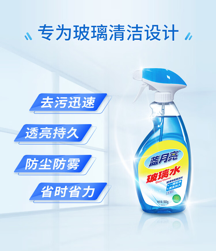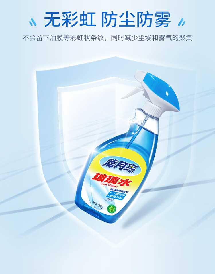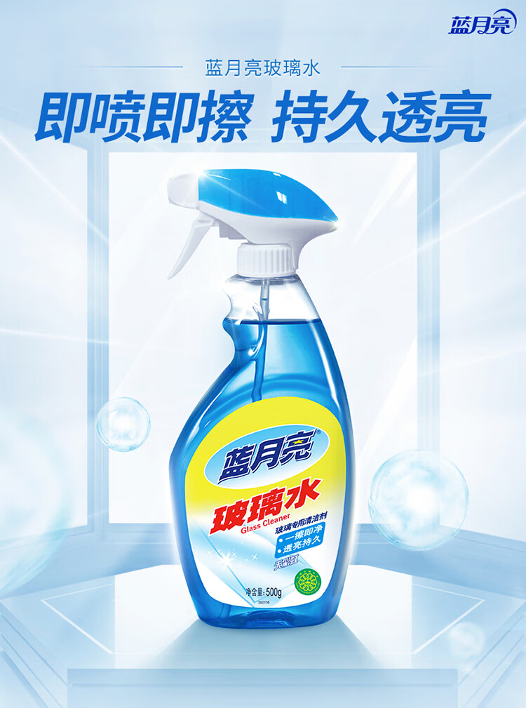 蓝月亮玻璃清洁剂 浴室汽车玻璃清洁 瓷砖光滑玻璃水 500g+500g