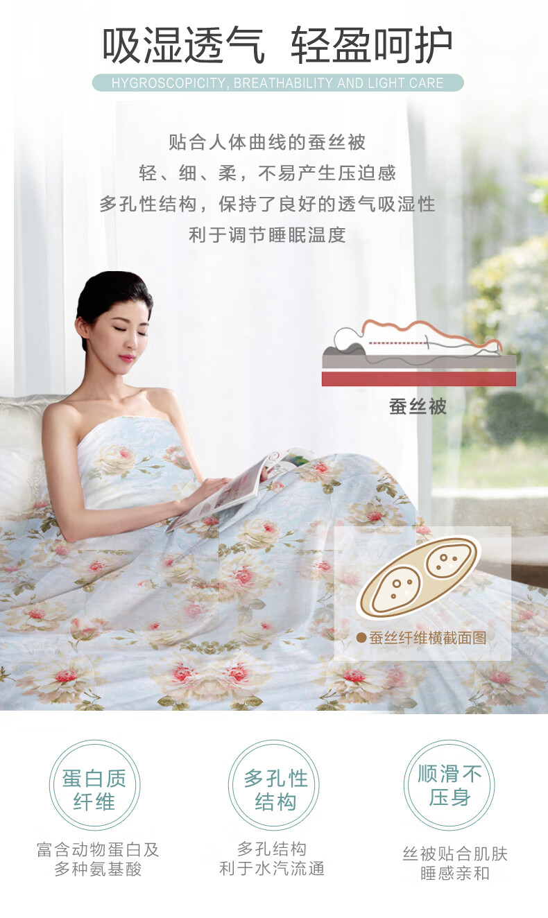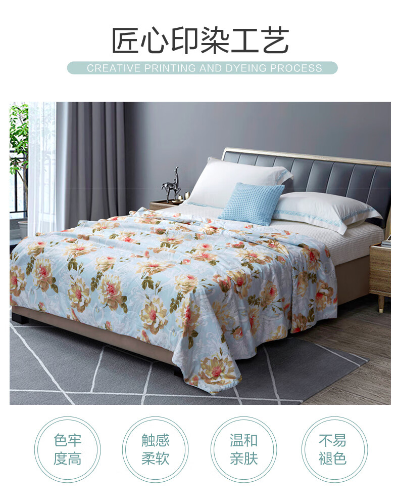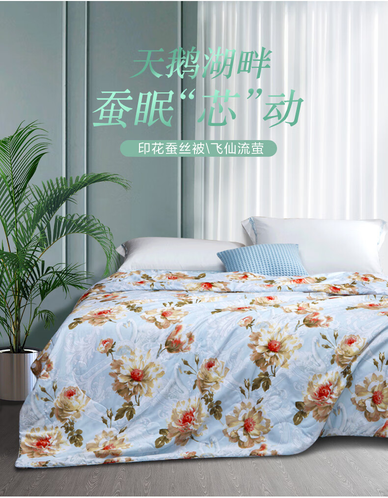 富安娜家纺蚕丝被子空调被芯夏薄被印花蚕丝夏被\飞仙流萤\203*229cm