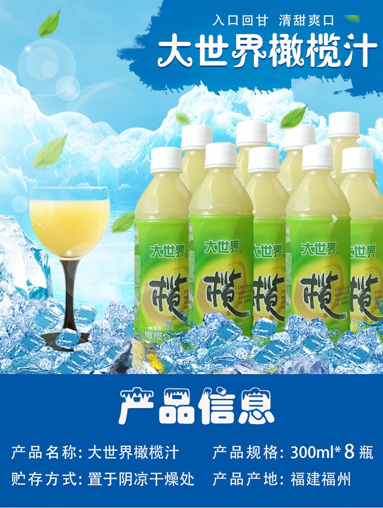 大世界 橄榄汁果汁饮料果味饮料福建特产300ml*8瓶夏季饮料凉饮