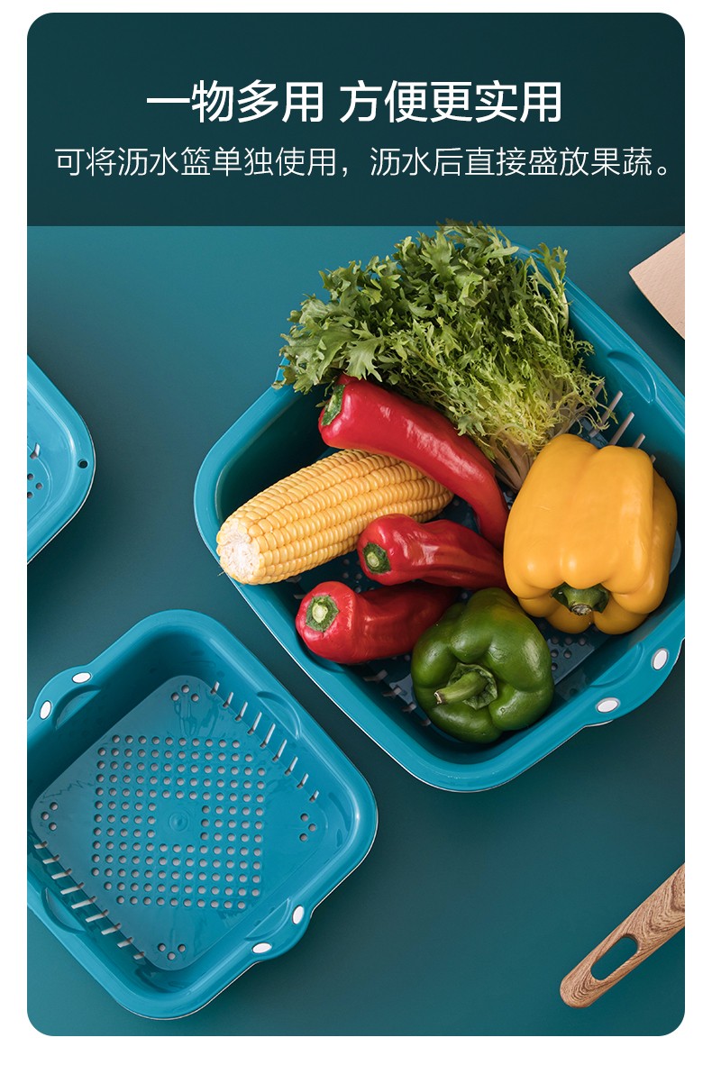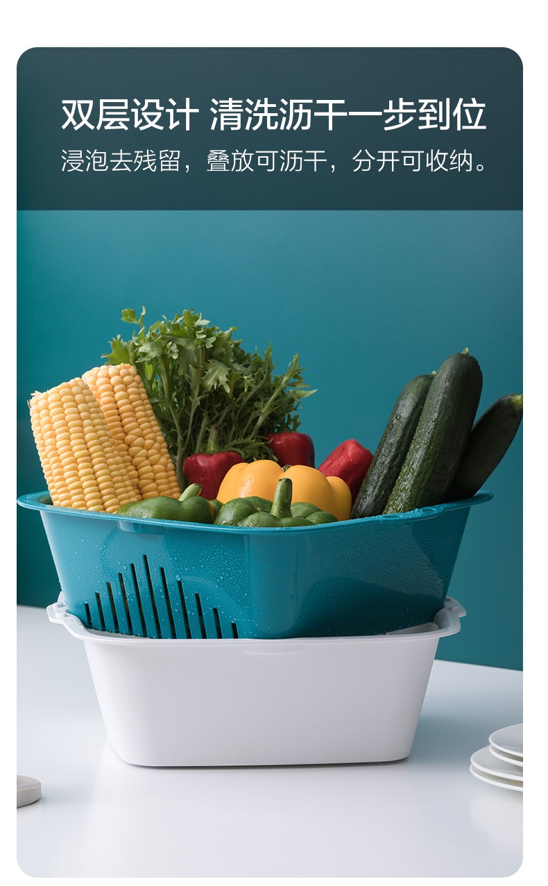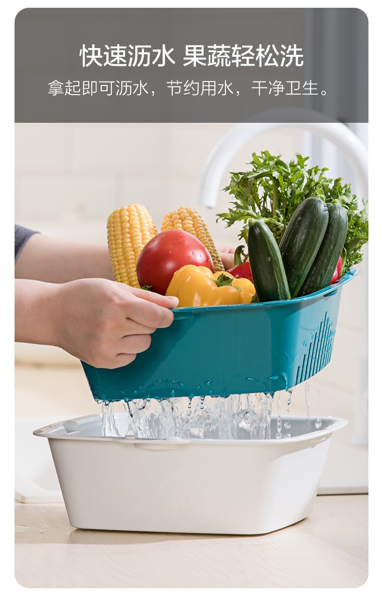 茶花(CHAHUA) 茶花洗菜盆时尚滤水筛两用果蔬沥水筛沥水篮滤水筐水果盘随机色 蓝色 大中小号组合装共3个