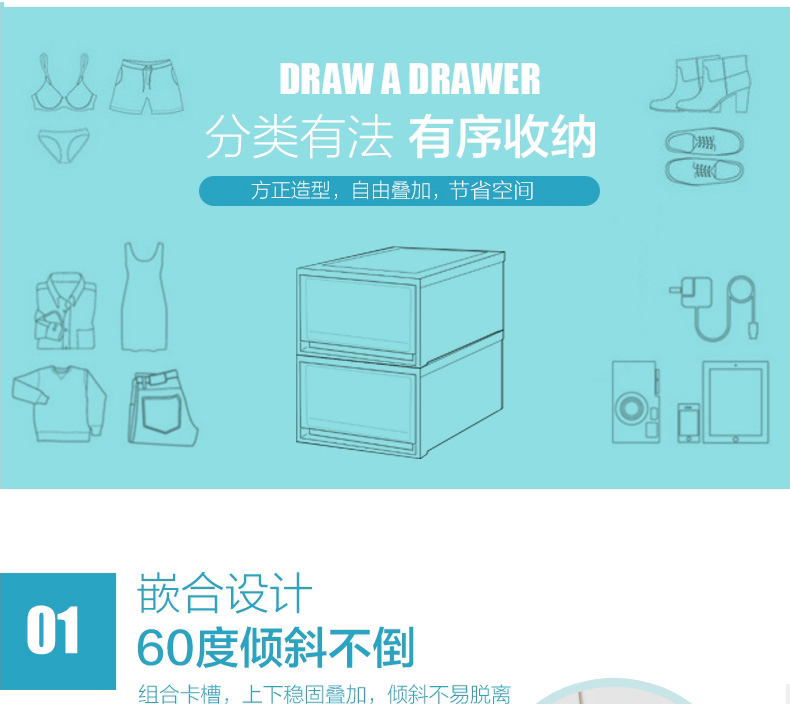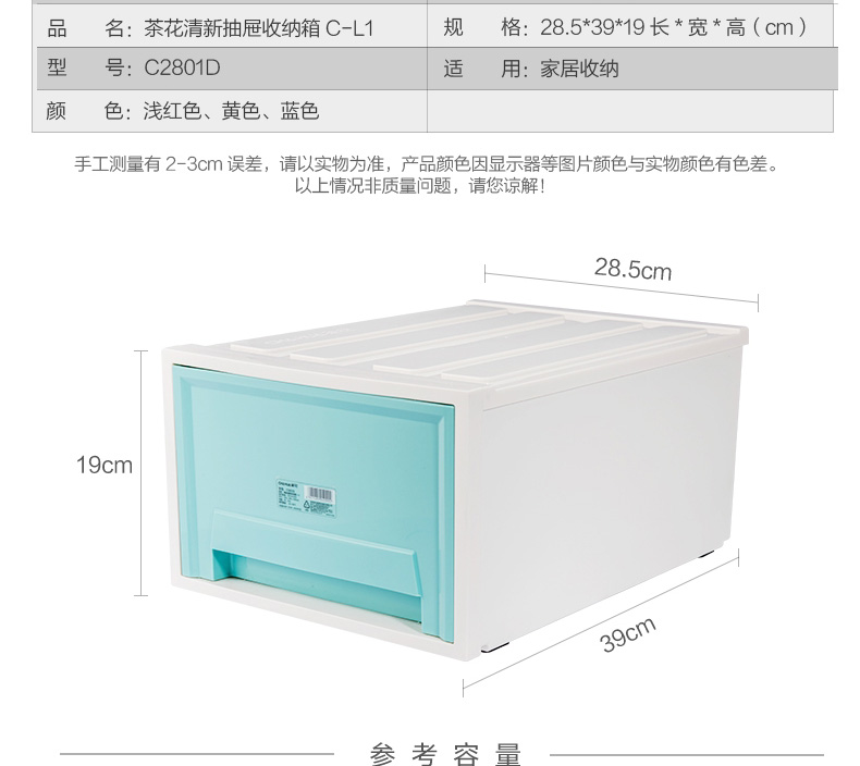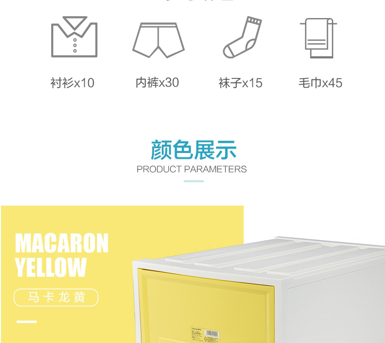 茶花(CHAHUA)收纳柜抽屉收纳柜整理柜塑料收纳箱抽屉式储物柜衣服柜整理柜 马卡龙黄 3层装