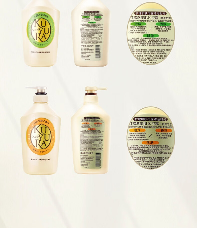 可悠然沐浴露大黄瓶550ml 美肌香氛滋润保湿 男女通用香味持久沐浴乳