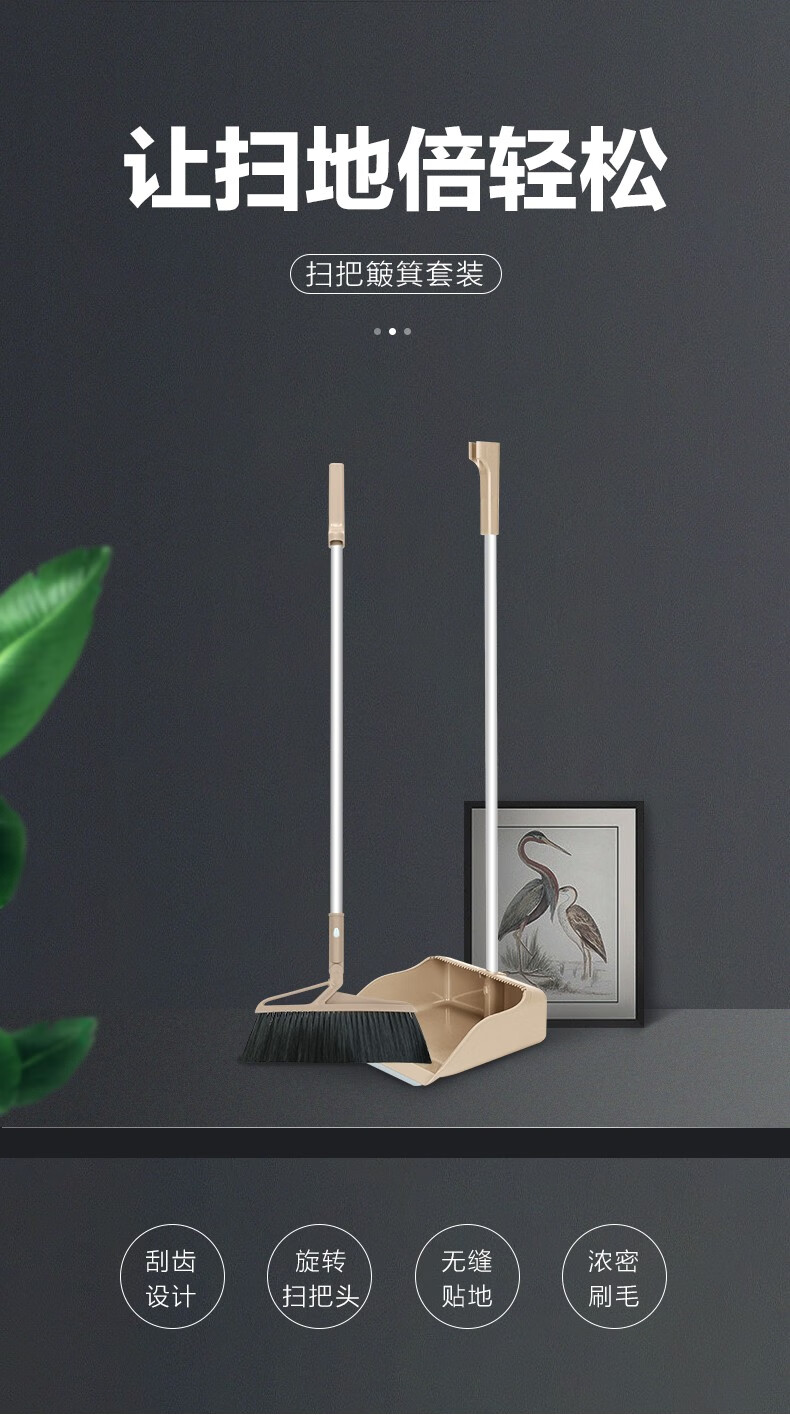 茶花(CHAHUA) 茶花扫把软毛扫帚簸箕套装组合畚斗簸箕笤帚扫地 卡其色