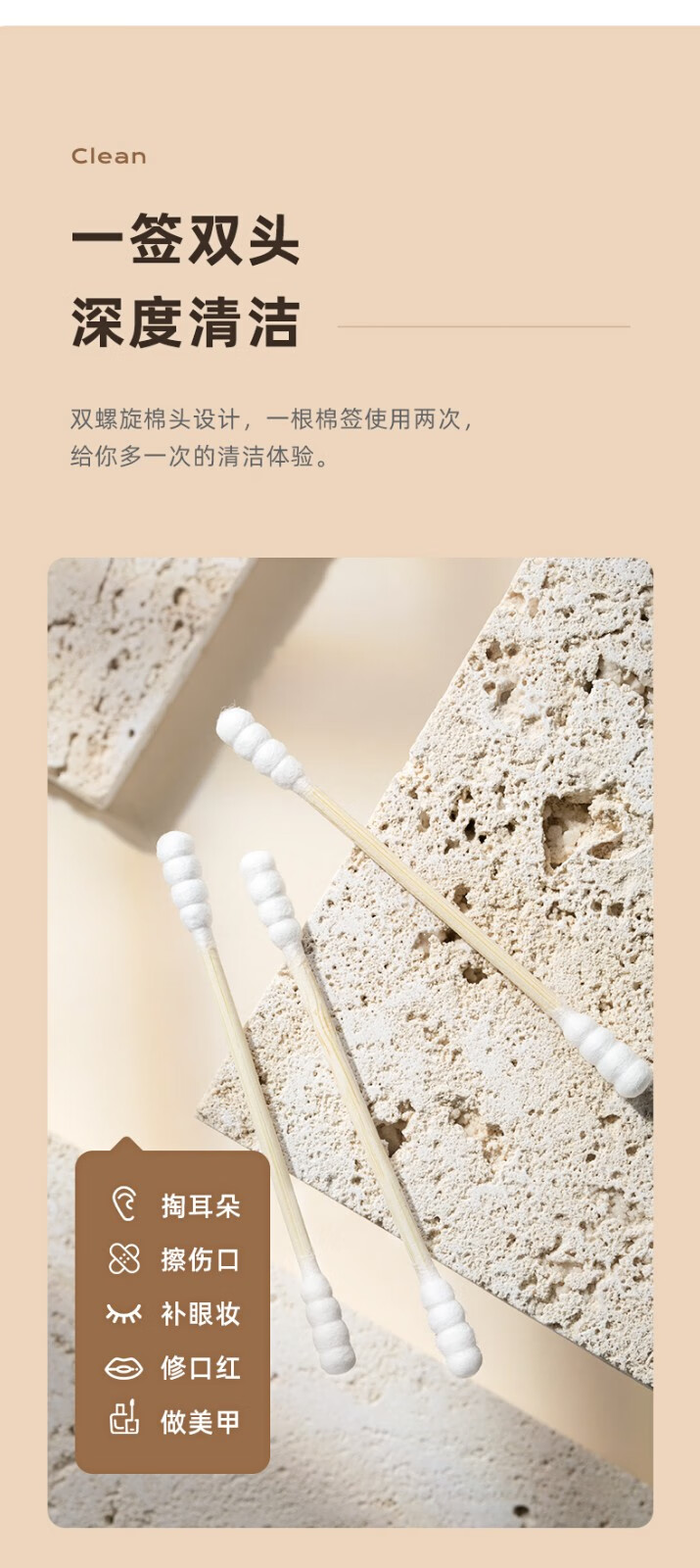 茶花(CHAHUA)棉签棉签棒化妆双头棉签掏耳朵棉棒日用棉花签卫生盒装25 4103高级棉球棒 1盒共250支
