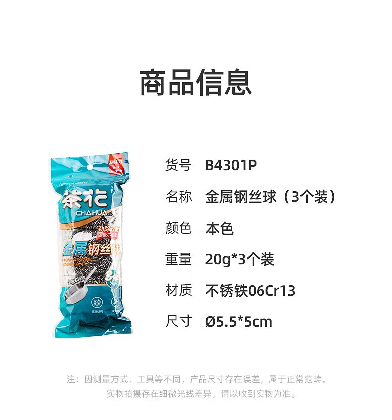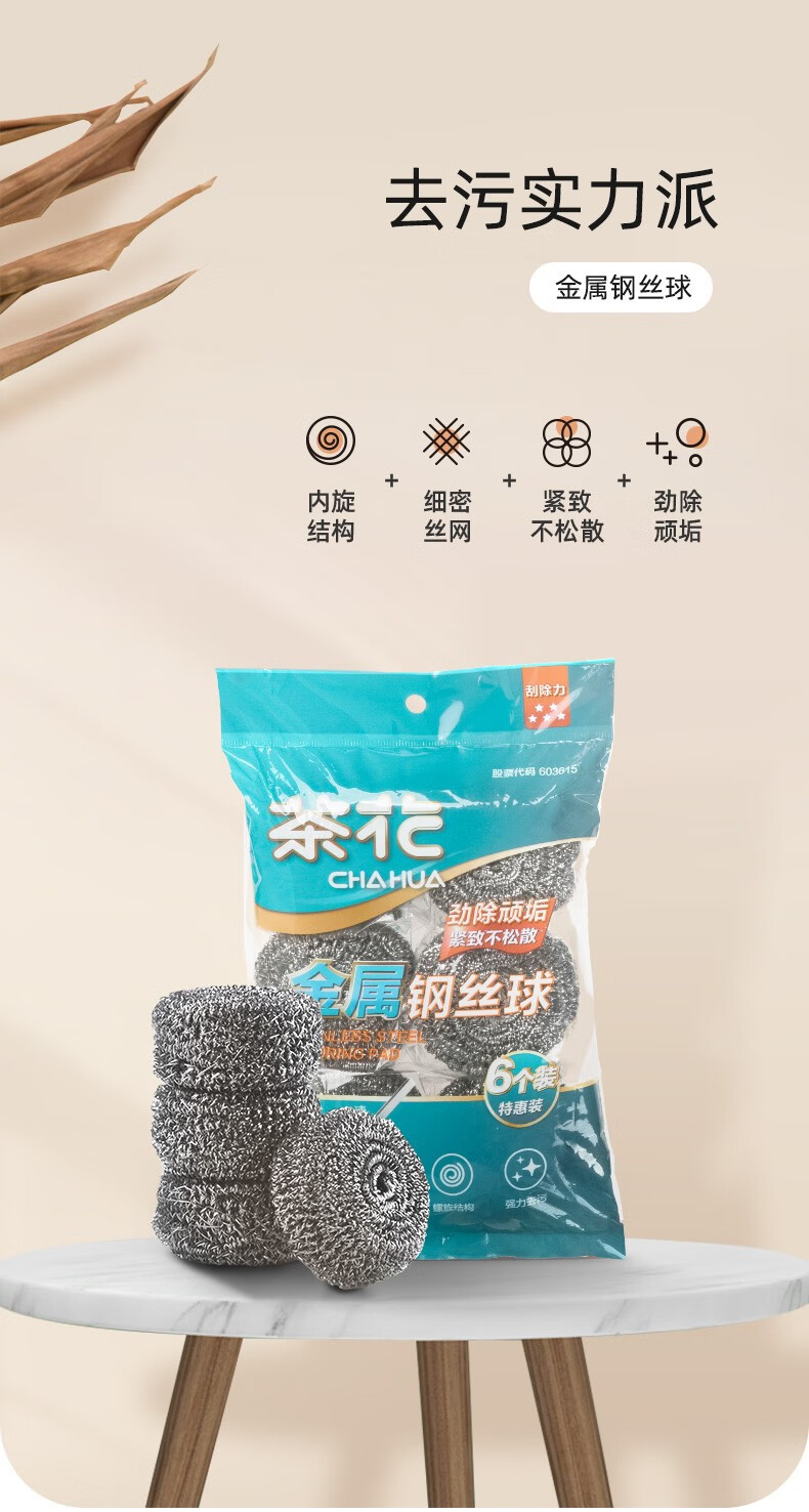 茶花(CHAHUA) 不生锈清洁球钢丝球洗碗铁丝球擦刷洗锅刷锅洗碗 【3包18个】家庭装